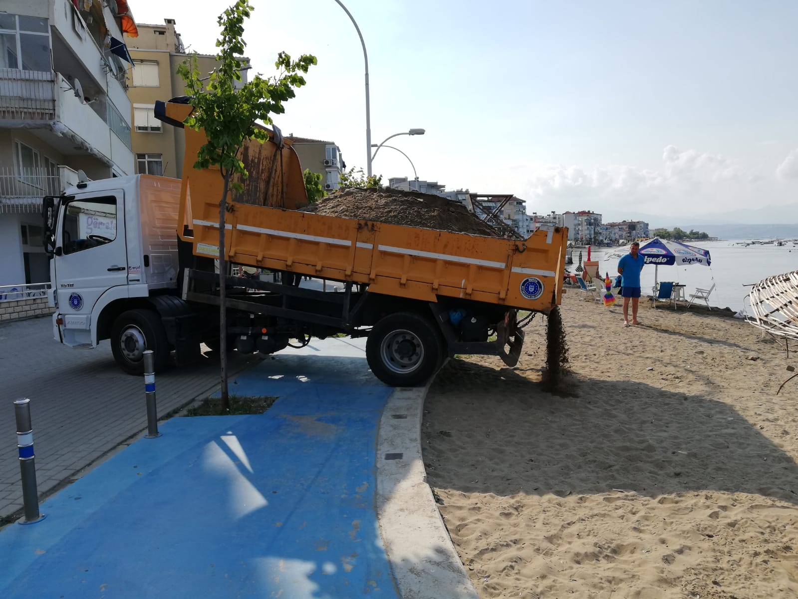 Büyükşehir Belediyesi Ulaşım Dairesi Başkanlığı Sahil Hizmetleri Şube Müdürlüğü kıyı ve plaj temizlik ekipleri, halk plajlarında tesviye ve yabani otlarla mücadele çalışmalarını sürdürüyor. Yüzme sezonu öncesinde hazırlıkları tamamlanan halk plajlarına, kum nakli çalışmaları devam ediyor. Olumsuz hava şartları nedeniyle özellikle Küçük Kumla halk plajında oluşan kum eksilmesi, Valilik izniyle kum nakli yapılarak çalışmalar tamamlandı. Büyükşehir Belediyesi’ne ait kum eleme aracı ile de Gemsaz halk plajında çakıl, taş, ambalaj ve sigara izmariti gibi atıkların temizliği ile kum eleme çalışmaları devam ediyor.