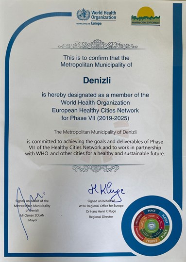 Dünya Sağlık Örgütü (DSÖ) Avrupa Sağlıklı Şehirler Ağı’na 2010 yılında kabul edilen Denizli Büyükşehir Belediyesi, büyük bir başarıya daha imza attı. DSÖ Sağlıklı Şehirler Ağı’na 2009-2013 yıllarını kapsayan 5. Faz döneminden itibaren üye olan ve Engelliler Çalışıyor, Kentsel Dönüşüm gibi birçok başarılı proje gerçekleştiren Denizli Büyükşehir Belediyesi 2019-2025 yıllarını kapsayan 7. Faz’a yaptığı üyelik başvurusu da kabul edildi. Avrupa’nın en sağlıklı şehirleri arasına girmeyi başaran Denizli Büyükşehir Belediyesi, 7’inci Faz’a kabul edilen Türkiye’deki 4. büyükşehir olmanın gururunu yaşadı. DSÖ Avrupa Sağlıklı Şehirler Ağı’nın 7. Faz’daki çalışmasının “Sağlık alanında liderlik ve katılımcı yönetişimin geliştirilmesi” oluşturacağı ifade edilirken, proje ile uluslararası ilişkilerin geliştirileceği gibi diğer Avrupa şehirleriyle tecrübe ve bilgi paylaşımının sağlanacağı belirtildi.