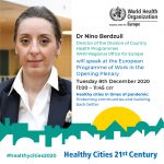 Sağlıklı Kentler Birliği’nin de üyesi olduğu Dünya Sağlık Örgütü Avrupa Sağlıklı Şehirler Ağının 7. Fazının ilk konferansı mevcut pandemi sürecinden dolayı 8 – 10 Aralık 2020 tarihlerinde internet üzerinden online olarak gerçekleşti. “Salgın Zamanlarında Sağlıklı Şehirler: Toplulukları Korumak ve Yeniden Daha İyi İnşa Etmek” temalı bu konferansa DSÖ ve uluslararası kuruluşlardan uzmanların yanındaulusal ağlara üye ülkelerin ve belediyelerin temsilcilerikatıldı.