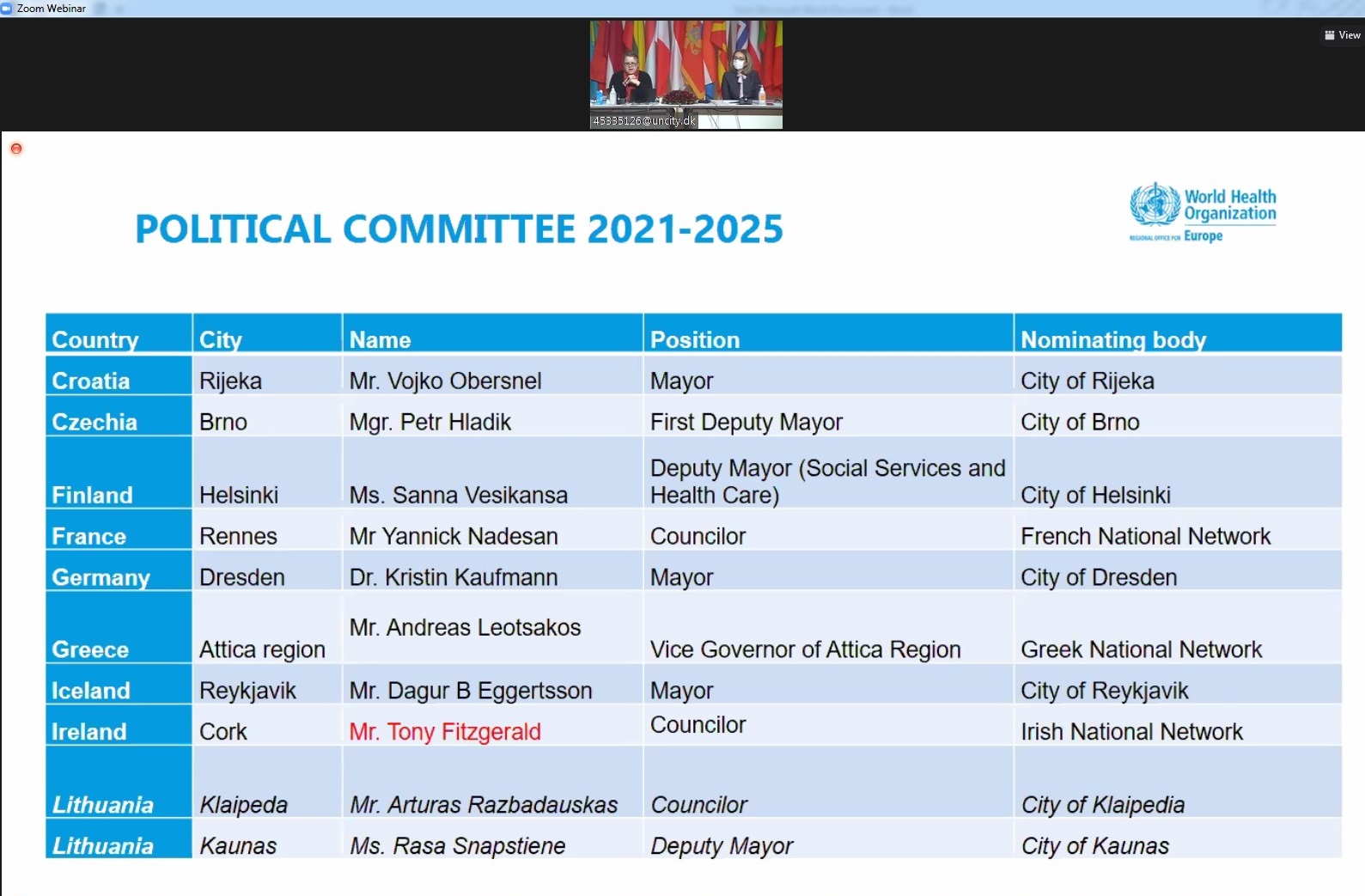 İlk oturumda gerçekleşen açılış konuşmalarında DSÖ Avrupa Sağlıklı Şehirler Ağı Program Yöneticisi Monika Kosinska ile DSÖ Avrupa Bölge Direktörü HansKluge’nin konuşmaları yer aldı. Ardından sırasıyla İrlanda Cork Belediyesi’nin eski belediye başkanı ve İrlanda Sağlıklı Şehirler Ağı Politik Temsilcisi Tony Fitzgerald ve DSÖ Avrupa Bölgesel Ofisinden, Ülke Sağlık Programları Bölüm Direktörü Nino Berdzuli söz aldı. Son olarak DSÖ Avrupa Bölgesel Ofisinden Bölgesel Acil Durum Direktörü Dorit Nitzan “Avrupa Bölgesinde COVID-19’un durumu ve yerel yönetimlerin ile şehirlerin Covid-19’a karşı müdahaleleri” başlıklı konuşmasını gerçekleştirdi.