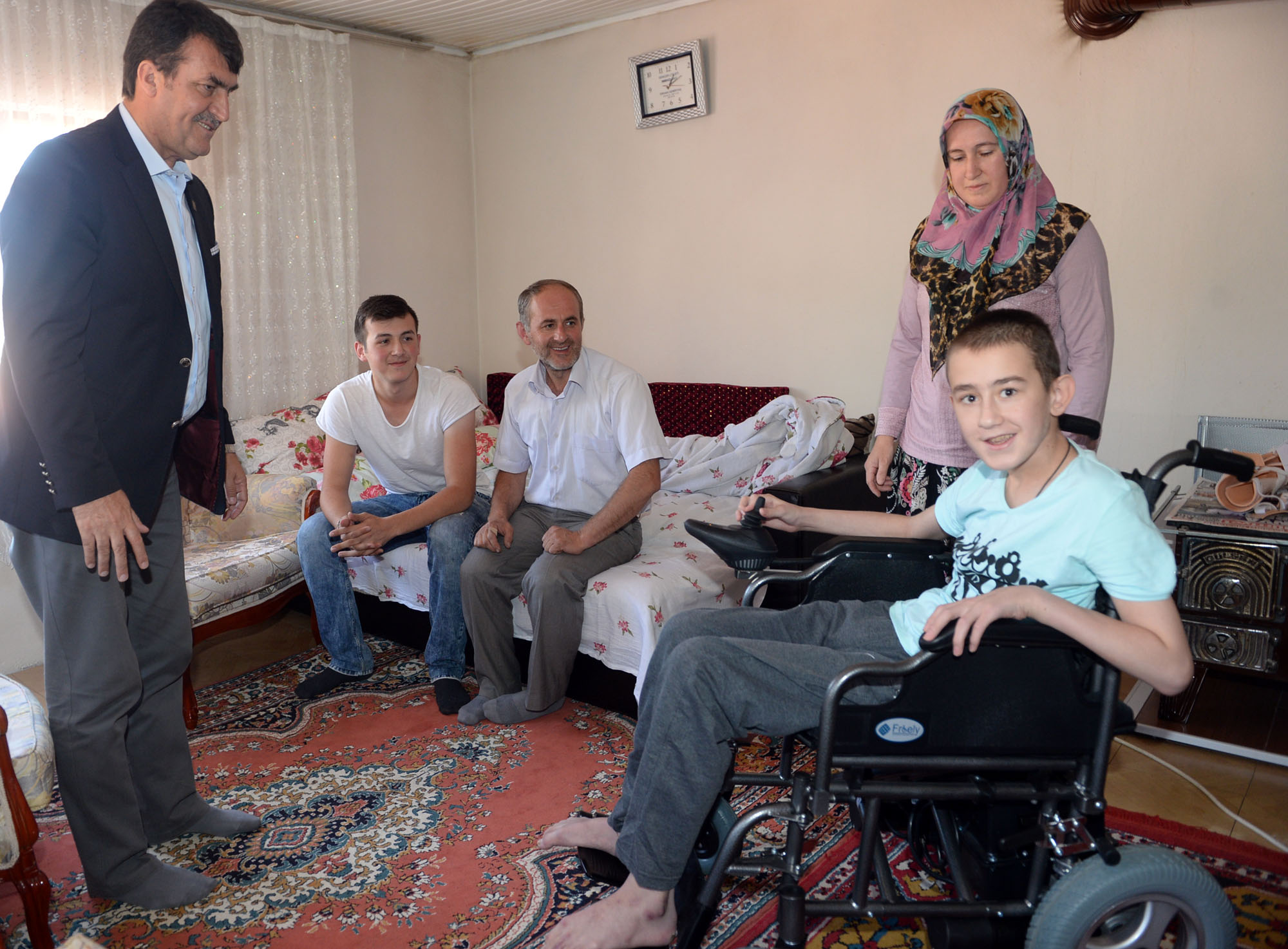 Geçtiğimiz Mayıs ayında Fevzi çakmak Caddesi’nde karşıdan karşıya geçerken trafik kazası geçiren ve uzun süre hastanede tedavi gören 14 yaşındaki Şaban Kasap, kazanın ardından bir daha yürüyemedi. Osmangazi Belediye Başkanı Mustafa Dündar, durumundan haberdar olduğu Şaban’ı, Belediye Başkan Yardımcısı Halil Döner ile birlikte Kirazlı Mahallesi’ndeki evinde ziyaret ederek kendisine geçmiş olsun dileklerini iletti. İki çocuk sahibi Ahmet ve Şehri Kasap çiftinin çocukları olan Şaban’ın durumu hakkında anne ve babasından bilgi alan Başkan Dündar, kendisini ziyarete gelen arkadaşlarının evden ayrılırken onlarla birlikte gidemediği için üzülüp ağladığını öğrendiği çocuğa sürpriz yaparak bir akülü araç hediye etti.