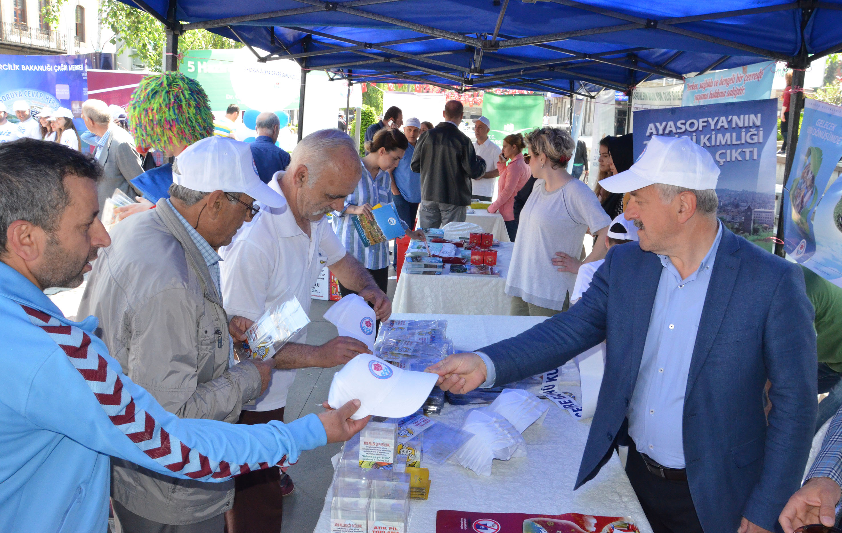Büyükşehir Belediyesi, Çevre ve Şehircilik İl Müdürlüğü ve Ortahisar Belediyesi tarafından oluşturulan stantta vatandaşlara Büyükşehir Belediyesi tarafından 5 Haziran Çevre Gününe özel tişört ve şapka, el broşürleri, atık pil kutusu dağıtımı yapıldı. Trabzon Büyükşehir Belediye Meclisi 1. Başkanvekili Seyfullah Kınalı söz konusu etkinliklerde hazır bulundu.