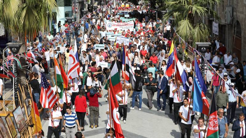 Sanatçılar ve misafirlerin katılımı ile başlayan coşkulu yürüyüş Mersin Büyükşehir Belediye Başkanı Burhanettin Kocamaz’ın öncülüğünde gerçekleşti. 17 ülkeden 172 misafir sanatçının ağırlanacağı festivalin kortej yürüyüş Ulu Camii önünden başlayarak Atatürk Caddesi boyunca devam etti ve Cumhuriyet Meydanı’nda sona erdi.