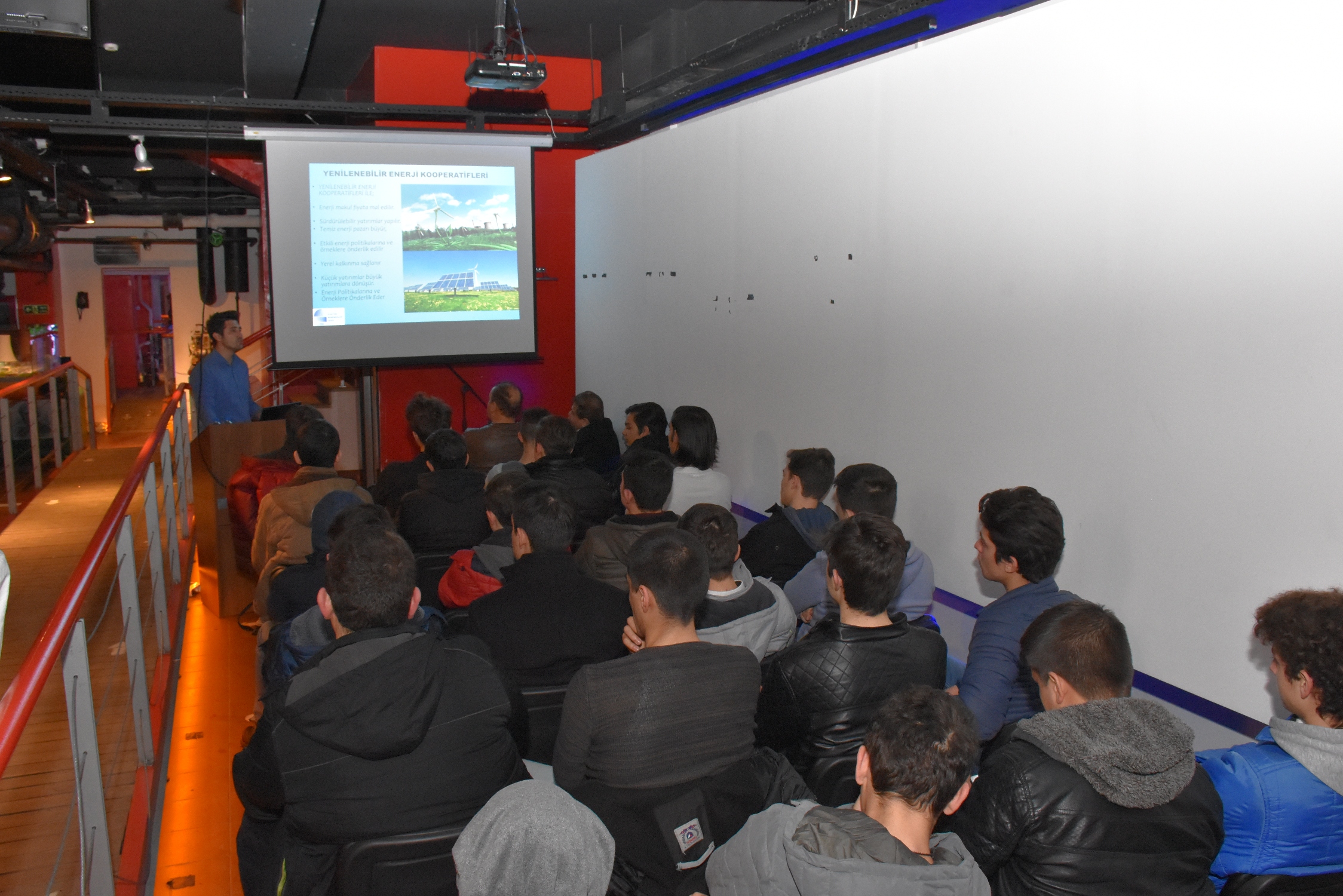 Nesip Arıkan ise enerjinin global anlamda önemini ve teknik yönlerini öğrencilere aktardı. Bireyden genele kadar herkesin enerjinin bir çeşidini her an kullandığını aktaran Arıkan, tüm ülkelerin bu yüzden enerji üzerine yoğunlaştığını ifade etti. Enerjinin güç, iş, para, günlük hayat demek olduğunu vurgulayan Arıkan, insan hayatında enerjinin büyük yer tuttuğunu dile getirdi. Tükenebilir enerjiler kullanıldıkça doğada kaynakların azaldığını, yenilebilir enerjide ise bunun söz konusu olmadığını ifade eden Arıkan, “Günümüzde enerjinin büyük kısmını elektrik enerjisi olarak kullanıyoruz. Ülkemizde elektrik doğalgaz, kömür, linyit, hidrolik, rüzgar, jeotermal ve diğer kaynaklardan üretiliyor. Şuanda Türkiye’de üretilen enerjinin yenilebilir enerji sınırı yüzde 8 civarındadır. Ama bu oran hızla yükseliyor. Dünyada enerji kullanımı ve üretimi nüfus artışı ve konfor sebebiyle her sene artmaya devam ediyor” dedi.