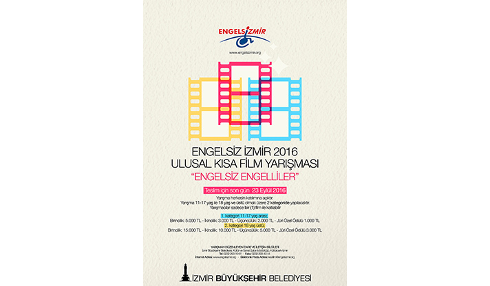 İzmir Büyükşehir Belediyesi, “Engelleri Kaldıralım” konulu uluslararası karikatür yarışmasından sonra, bu kez “Engelsiz Engelliler” başlığıyla ‘2016 Ulusal Kısa Film Yarışması’ düzenliyor. Yarışmaya katılmak için son başvuru tarihi 23 Eylül 2016.