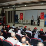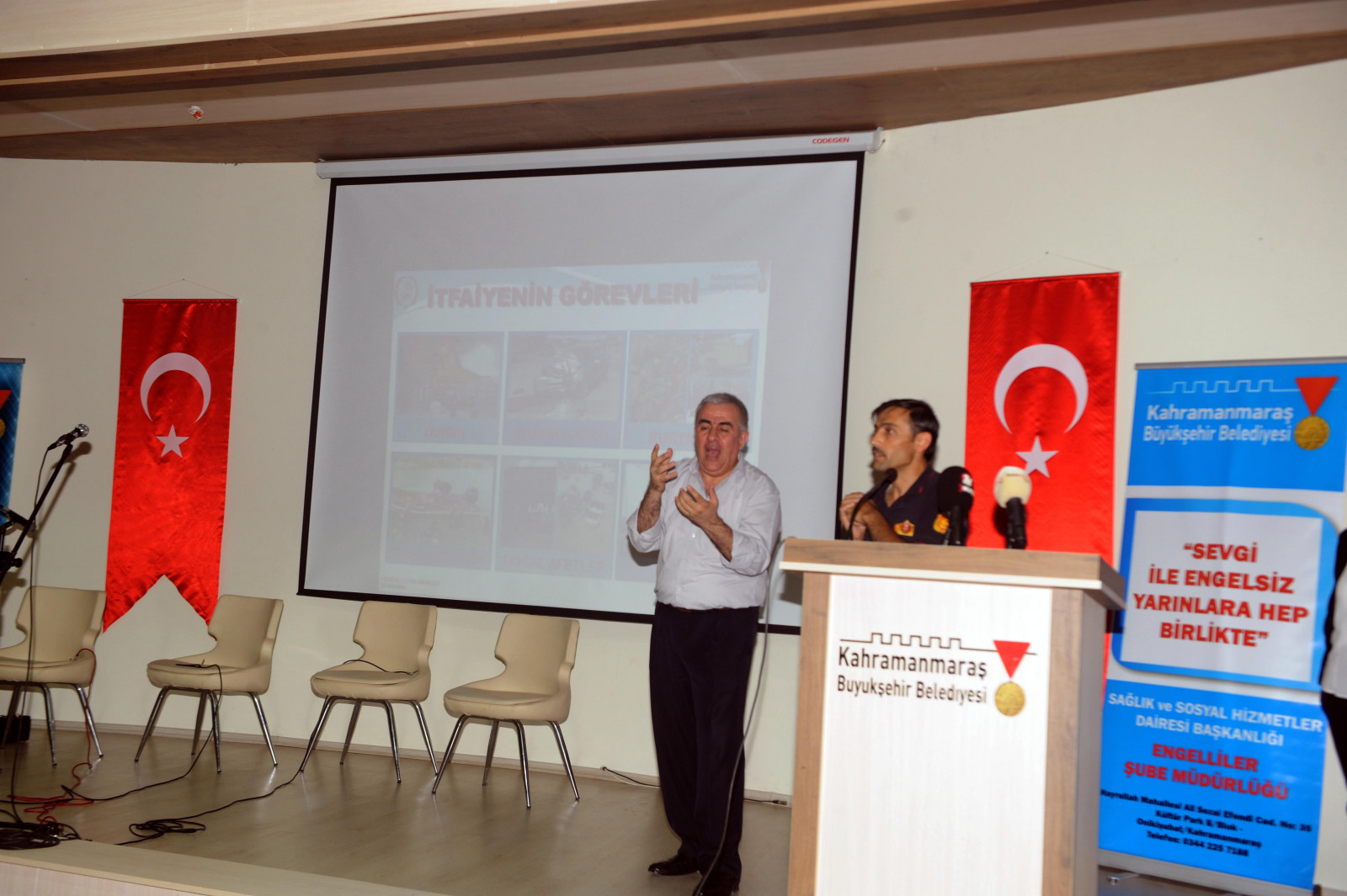 Açılış konuşmasının ardından kürsüye gelen Kahramanmaraş Büyükşehir Belediyesi İtfaiye Dairesi Başkanlığı eğitmenlerinden Nimetullah Aksoy, itfaiyenin görevleri, yangının çıkış sebepleri, yangın anında yapılması gerekenler gibi birçok konuyu kapsayan geniş bir eğitim sundu. İşitme engelliler için işaret dili ile çevirisi yapılan programın sonunda katılımcılara sertifikaları verildi.