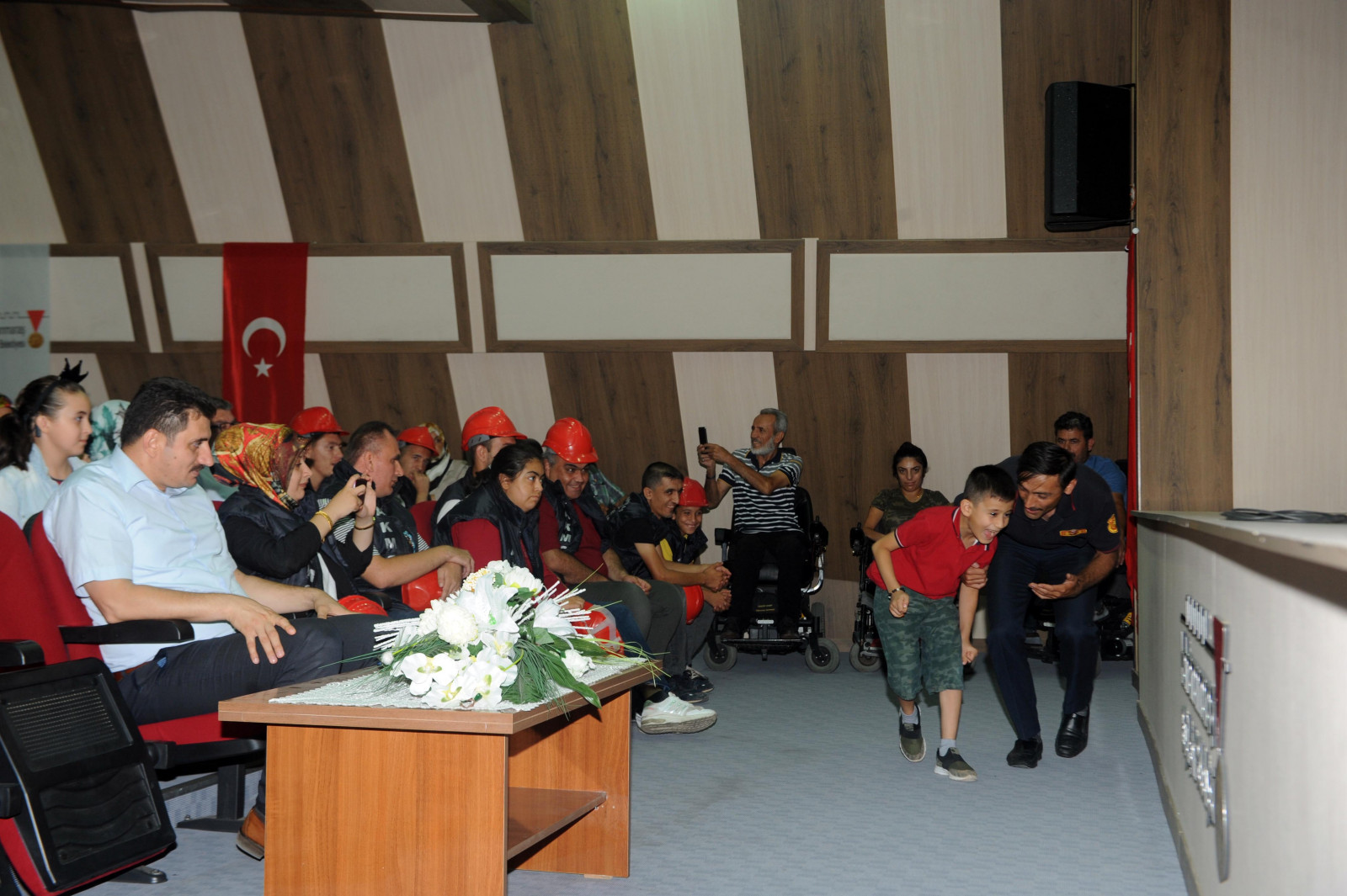 Sunduğu eğitimden dolayı Nimetullah Aksoy ve işaret dili çevirmeni Muhammed Akif Kirişçi’ye Engelliler Şube Müdürü Mehmet Fatih Akşam ve İtfaiye Eğitim Şube Müdürü İbrahim Çataltaş tarafından teşekkür edilerek çiçek takdim edildi.
