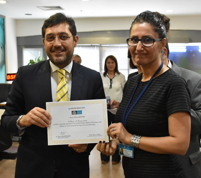 Beşiktaş Belediye Başkanı Av. Murat Hazinedar, eğitim programında başarılı olan personelimize sertifikalarını bizzat teslim etti. Beşiktaş Belediyesi Hizmet Binası giriş katındaki hizmet merkezinde gerçekleştirilen sertifika törenine Başkan Hazinedar, Beşiktaş Belediyesi Engelli Koordinasyon Merkezi Başkanı Murat Demirok, Engelli STK’ları, belediye personeli ve vatandaşlar katıldı.