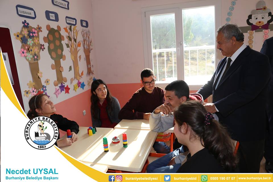 İlçede engelliler yararına çalışan ve görev yapan kamu kurum ve kuruluşlara da yardım eden Burhaniye Belediyesi ilçe genelinde bulunan 3 adet derneğin taleplerinde her daim destek oldu. Burhaniye’nin Pelitköy Mahallesinde Cumhurbaşkanı Recep Tayyip Erdoğan’ın katılımlarıyla açılan Ticaret Odası Özel Eğitim Uygulama Merkezi ve Özel Eğitim İş Uygulama Merkezi okuluna da ihtiyaçları ve talepleri doğrultusunda birçok yardımlarda bulunuldu. Okulun Fiziki yapısının iyileştirilmesinde ve her türlü isteklerinde yanında olan Burhaniye Belediye Başkanı Necdet Uysal engelleri aşan bir hizmet anlayışını ilçeye getirdi.
