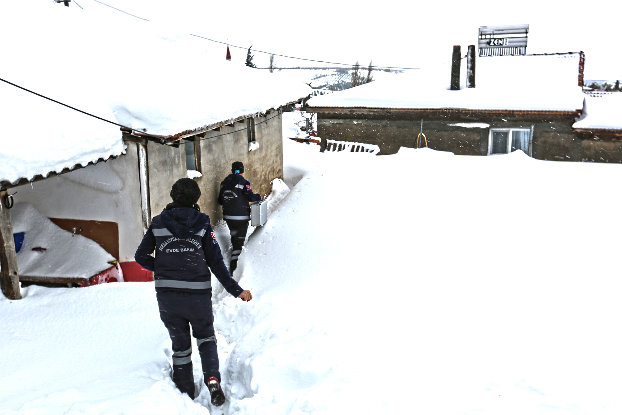 Merkeze başvuran hasta ve yaşlıları periyodik olarak ziyaret eden ekipler, yoğun kar yağışına rağmen bakım hizmetini aksatmadı. Özellikle kar yağışının yer yer 2 metreye ulaştığı bölgelerdeki hastalara ulaşmak için Ulaşım Daire Başkanlığı ekiplerinden destek alan ekipler, karla kaplı yolların ulaşıma açılmasının ardından hastalara müdahale etmeyi başardı. Karacabey’in Okçular Mahallesi’ndeki prostat ve felçli olan 71 yaşındaki Osman Bektaş’a bakım hizmeti götürmek için yola çıkan sağlık görevlileri, yaklaşık 2 saat süren greyder ile yol açma çalışmasının ardından mahalleye ulaşıp, Bektaş’a müdahale etti.