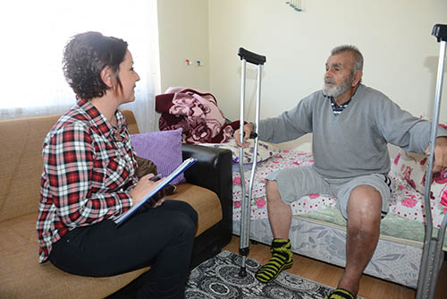 5 yıl önce Toptancı Hali’nde çalışırken kamyondan düşen ve omurgası zarar gören 52 yaşındaki Mehmet Arı’da evde bakım hizmetinden faydalanan hastalardan… Arı geçirdiği ameliyatların ardından yaşama tutunsa da yatağa bağımlı olarak hayatını sürdürüyor. Büyükşehir Belediyesi sağlık ekipleri tarafından haftanın üç günü ziyaret edilen Mehmet Arı’nın kontrolleri yapılıyor, duş ihtiyacı gideriliyor ve evi temizleniyor. İhtiyaçları karşılanan Mehmet Arı, sağlanan bu hizmetten duyduğu memnuniyeti dile getirdi. Arı, “Yaralarım çok fazlaydı, çok iyi baktılar, yaralarım azaldı, çok destek oldular. Doktorlardan hemşirelerden, Büyükşehir Belediye Başkanından Allah razı olsun” dedi.