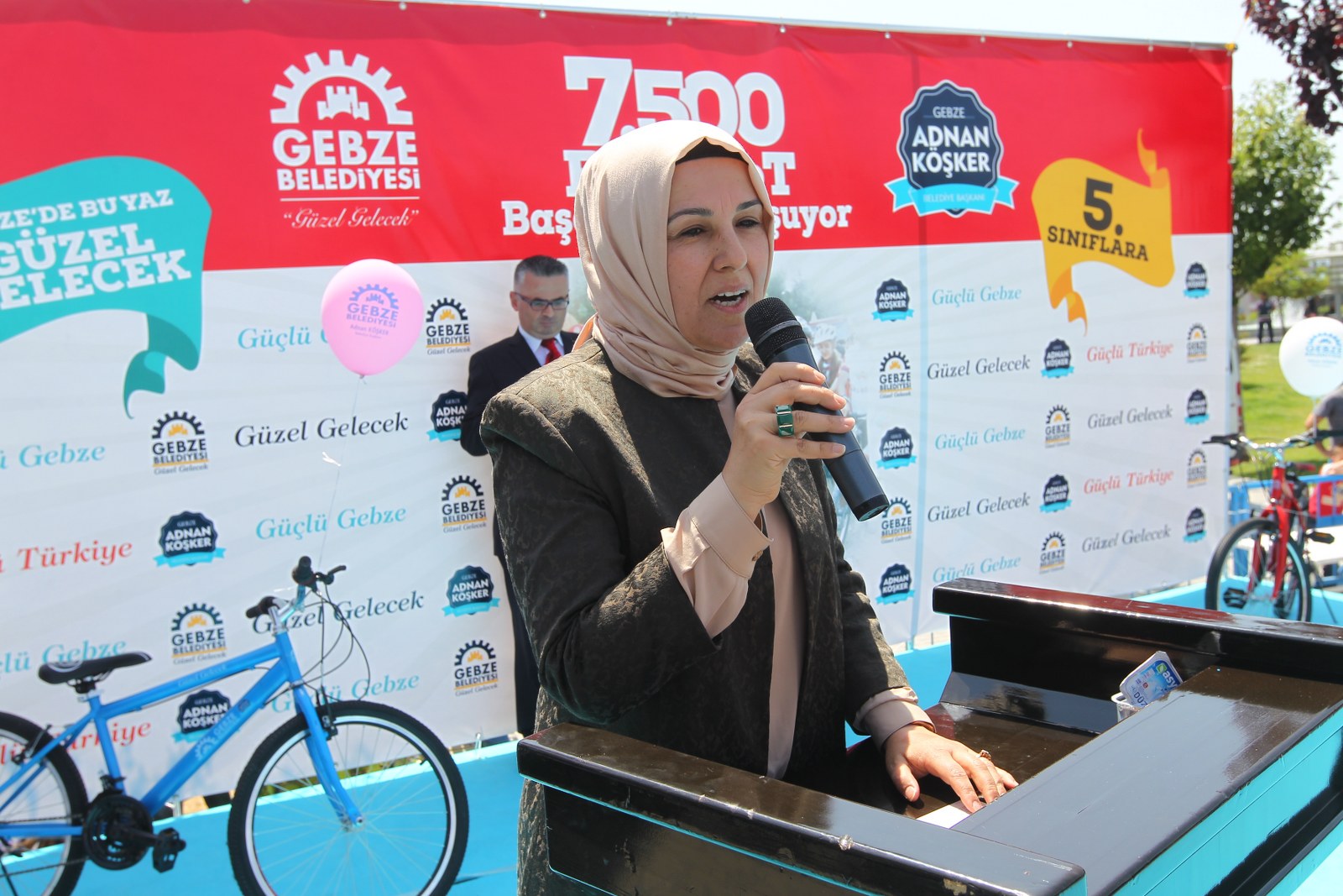 Milletvekili Yaman’ın ardından kürsüye gelen AK Parti Genel Merkez MKYK Üyesi ve Milletvekili Radiye Sezer Katırcıoğlu, “Mağfiret, bereket ve paylaşma ayı olan Ramazan ayınızı şimdiden tebrik ediyor. Hayırlara vesile olmasını diliyorum. 2023 ve 2071 vizyon hedeflerimize siz değerli genç kardeşlerimizle, bu nesille ulaşacağız. Evlatlarımızı bisikletle buluşturan Gebze Belediye Başkanımızı bu vesileyle tebrik ediyorum. Bisikletlerine kavuşan çocuklarımıza da iyi tatiller diliyorum. Başarıları daim olsun diyorum” şeklinde konuştu. Konuşmaların ardından ev sahibi Gebze Belediye Başkanı Adnan Köşker ve protokol üyeleri tarafından çocuklara bisikletleri törende takdim edildi. 7 bin 500 bisiklet belirlenen program dahilinde öğrencilere öğretmenleri nezaretinde dağıtılıyor.