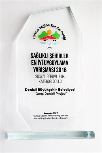Türkiye’nin en önemli gençlik projelerinden biri olarak seçilen Denizli Büyükşehir Belediyesi Genç Denizli Projesi, bir ödül daha aldı. Türkiye Sağlıklı Kentler Birliğinin 25’inci Olağan Meclis Toplantısı Mersin Büyükşehir Belediyesinin ev sahipliğinde yapıldı. Sağlıklı Kentler için Yenilenebilir Enerji başlığının ele alındığı konferansa; Mersin Valisi Özdemir Çakacak, Mersin Büyükşehir Belediye Başkanı Burhanettin Kocamaz, Sağlıklı Kentler Birliği Başkan Vekili ve Gebze Belediye Başkanı Adnan Köşker ile birliğe üye 64 belediye başkanı, meclis üyeleri ve davetliler katıldı. Yenilenebilir enerjiler ve kullanımları konusunda bilgi paylaşımının yapıldığı meclis toplantısının ardından Sağlıklı Şehirler 2016 En İyi Uygulama Yarışmasının ödülleri verildi.