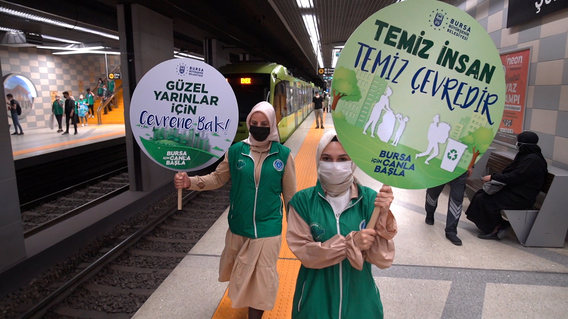 Bursa Mahalle Gönüllüleri çevre farkındalığı oluşturmak amacıyla Şehreküstü ve Osmangazi Metro istasyonlarında el dövizleri ile vatandaşları çevre hassasiyeti konusunda uyardı.