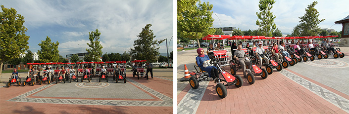 Heyecanları yüzlerinden okunan görme engelli vatandaşlar, denizin esintisiyle sahil kenarında bisikletle gezmenin tadını çıkardılar. Özel olarak üretilmiş olan dört tekerli bisikletlere binen görme engelli vatandaşları, yanlarında bulunan aile bireyleri yönlendirilerek ilerlemelerini sağladılar. “Bisiklete Binen Hayatı Hisseder” sloganıya yaklaşık 300 metre boyunca pedal çevirdiler.