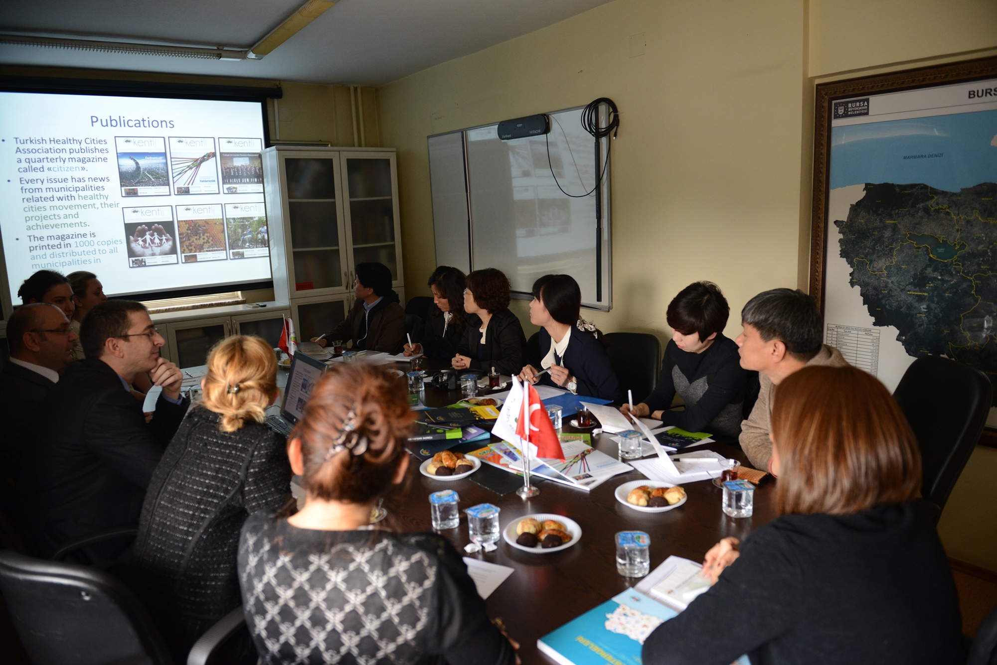 Dünyadaki 6 Dünya Sağlık Örgütü (DSÖ) Bölge Ofisinde yürütülen küresel ‘Sağlıklı Kentler Hareketi’nin iki farklı bölgesi olan DSÖ Batı Pasifik Ulusal Sağlıklı Şehirler Ağı ve Avrupa Ulusal Sağlıklı Şehirler Ağı üyeleri iki birliği buluşturan ziyarette Koreli yetkililere Türkiye Sağlıklı Kentler Birliği Müdürü Nalan Fidan ev sahipliği yaptı. Karşılıklı bilgi alışverişi, Türkiye Sağlıklı Kentler Birliği’nin sunumuyla başladı. Güney Kore Sağlıklı Kentler Birliği Müdürü Jong-gyun Ko ve birlik çalışanları, sağlıklı şehirler hareketini yaygınlaştırmak amacıyla Türkiye Sağlıklı Kentler Birliği olarak yürütülen faaliyetler, birliğin hedef ve stratejileri ile birlik üyesi kentlerin sağlıklı şehir uygulamaları aktarılırken, Sağlıklı Kentler Birliği’nin kurulmasına öncülük eden Bursa Büyükşehir Belediyesi’nin sağlıklı şehirler projesi kapsamında yaptığı çalışmalar paylaşıldı.