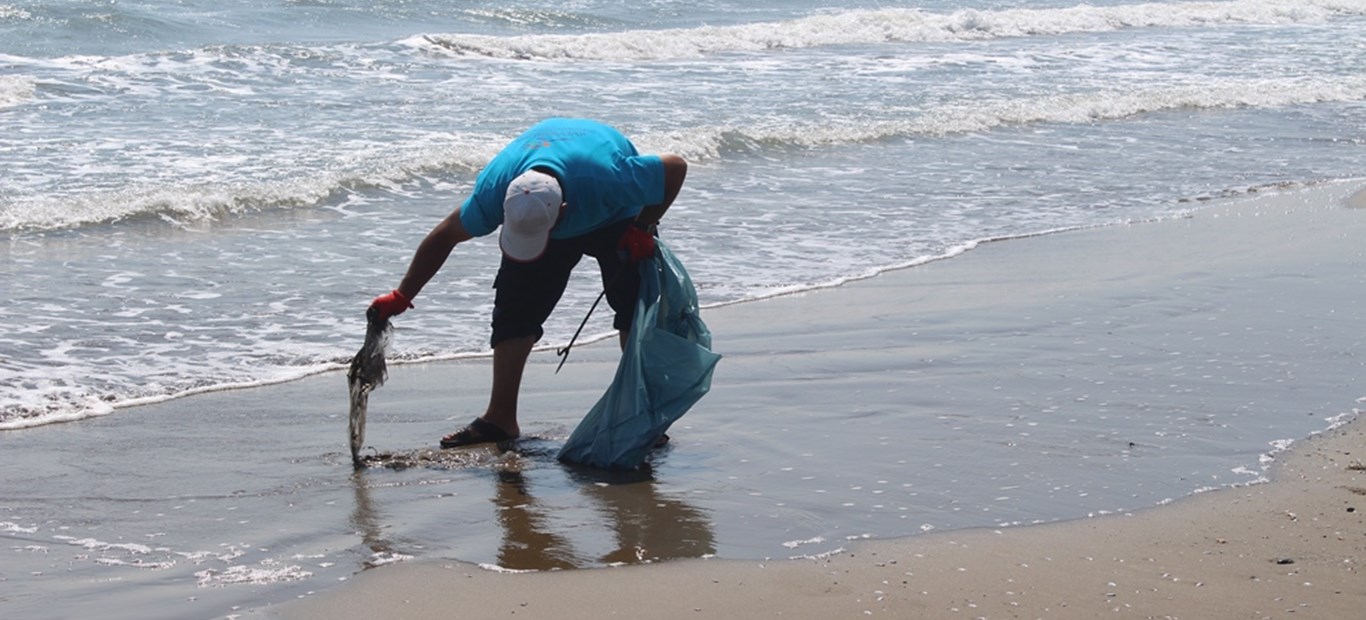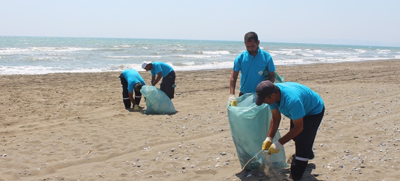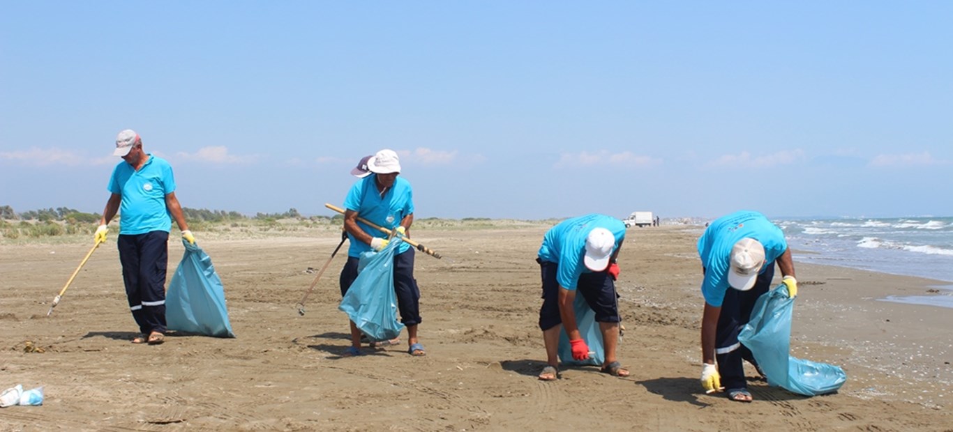 Erzin’den Samandağ Meydan Mahallesi’ne kadar olan uzanan ve vatandaşlar tarafından yoğun olarak kullanılan sahillerde devam eden çalışmalarda, denizden dalgalar vasıtasıyla taşınan ve insan kaynaklı atıklar titizlikle toplanarak kumsalın temiz kalması sağlanıyor.