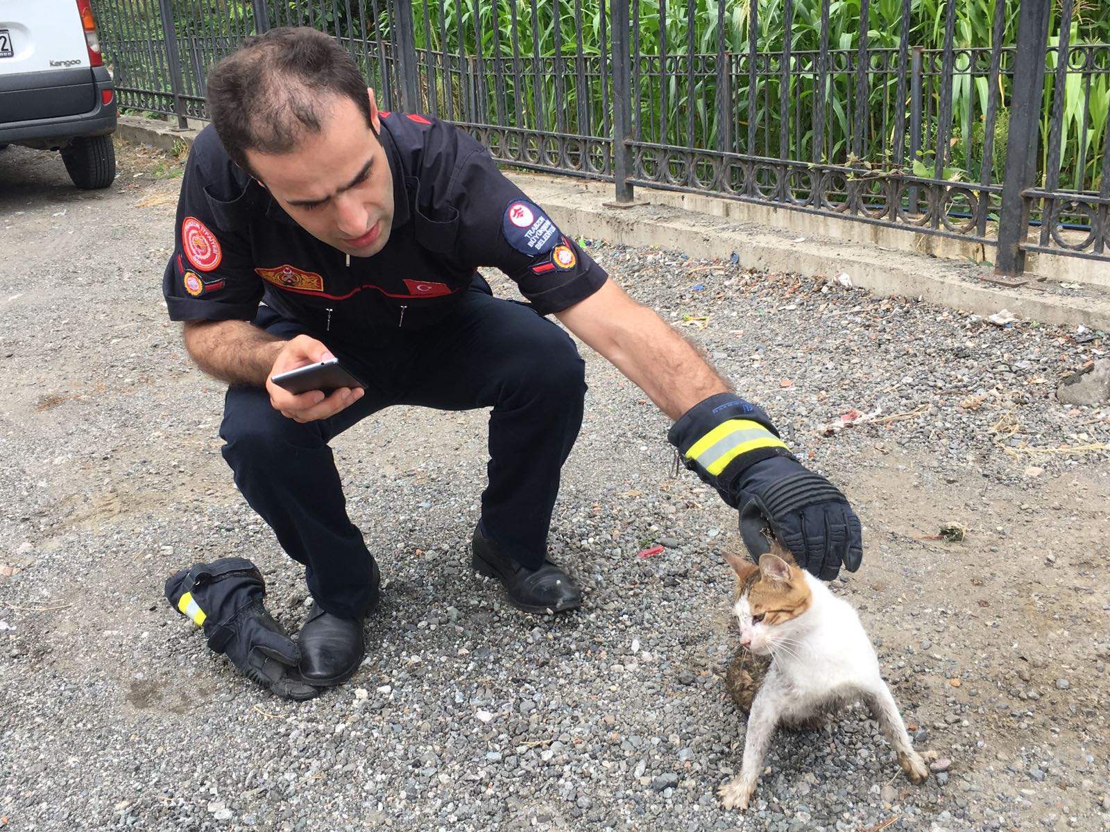 Trabzon’un Akçaabat ilçesinde Salıpazarı’nın altındaki derede sakat halde görülen kedinin idmanına Büyükşehir Belediyesi yetişti. Büyükşehir Belediyesi İtfaiye Dairesi Akçaabat Grup Amirliği ekipleri ihbar üzerine olay yerine intikal ederek belden aşağı sakat olan kediyi dereden kurtardı. Olay yerinde süt verilen kedi Büyükşehir Belediyesi Veteriner İşleri Müdürlüğü tarafından tedavi altına alındı.