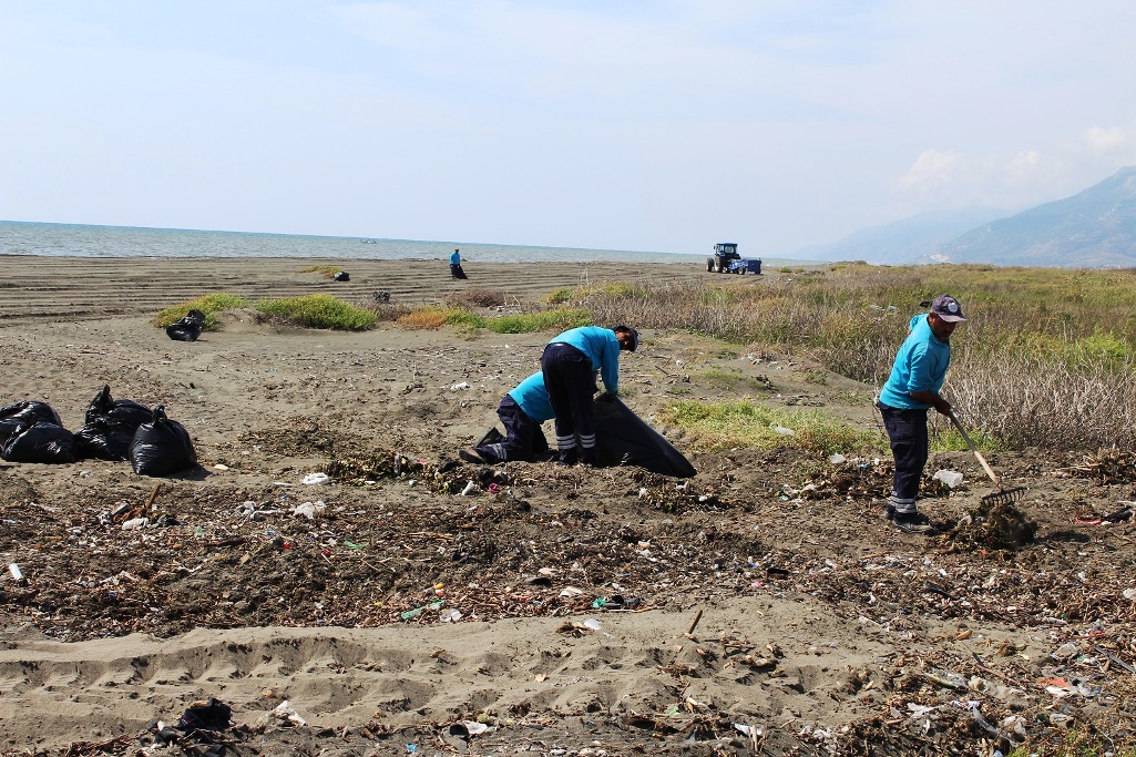 Şiddetli yağışlar sonucunda, Asi Nehri üzerinden sahillerimize taşınan odun, çöp ve atık miktarının bir hayli artmış olduğunun bilgisini paylaşan ekipler, deniz ve sahillerden 438 ton atık toplandığının altını çizdi.