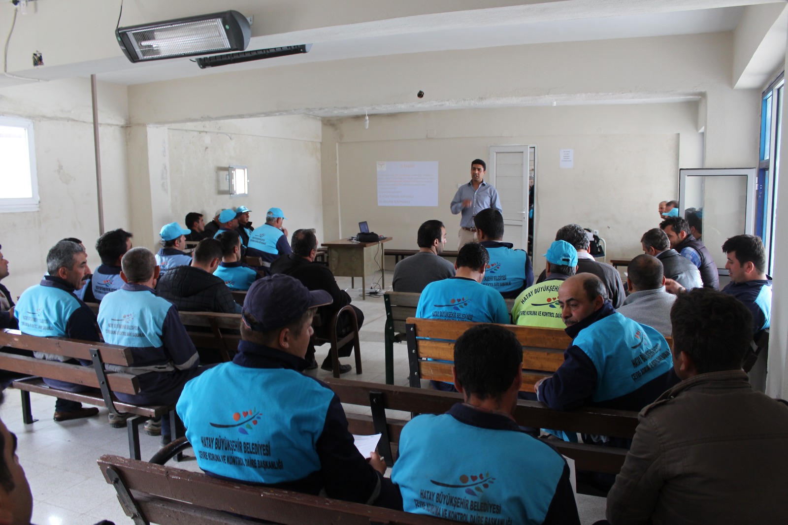 Hatay Büyükşehir Belediyesi(HBB), hizmet kalitesini her geçen gün ileriye taşımak ve personellerini donanımlı hale getirmek için tüm imkanlarını seferber ediyor. HBB Çevre Koruma ve Kontrol Dairesi Başkanlığına bağlı personeller, iş sağlığı ve güvenliği hususunda bilinç oluşturmak amacıyla düzenlenen eğitim programına katıldı.