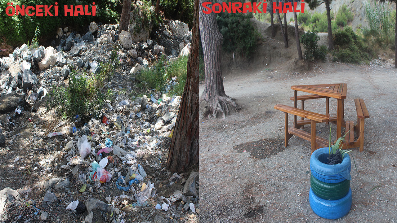 HBB yetkilileri vatandaşların rahat bir ortamda piknik yapabilmesi amacıyla geçtiğimiz günlerde mesire alanına yerleştirilen piknik masalarının tahrip edildiğini; boyanarak çöp kovası haline getirilmiş olan kullanılmış araç lastiklerinin ise yakıldığını bildirdi.
