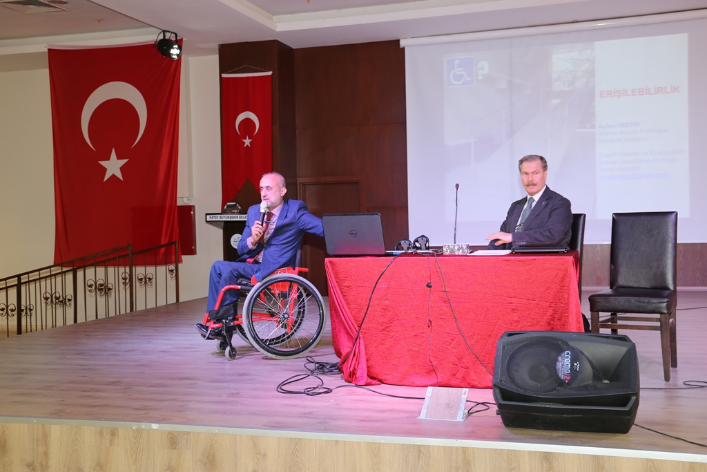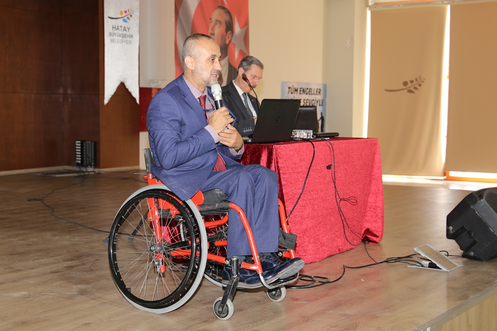 Aile ve Sosyal Politikalar Bakanlık Müşaviri Ayhan Metin,” Hatay Büyükşehir Belediyesi’nin gerçekleştirmiş olduğu erişilebilirlik semineri için burada bulunmaktayız. Erişilebilirlik, herkesin istediği her yere ve hizmete bağımsız ve güvenli olarak ulaşabilmesidir. Bu konuda bağımsızlık ve güvenirlik de oldukça önemlidir. Erişilebilirlik sosyal hayata atılımın ön koşullarından birisidir. Ayrıca erişilebilirlik sadece çevre olarak algılanmamalı toplu taşıma aracı ve bilgi erişim noktaları da engelli vatandaşlara göre tasarımlanmalıdır. Erişilebilirlik hayatımızın her alanında vardır ve olmaya da devam edecektir. Engelliler de bu yaşamın ve toplumun bir parçasıdır. Hayatı yaşanılabilir kılan farkındalıklarımızdır” dedi.