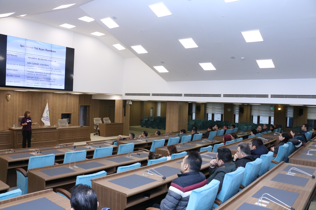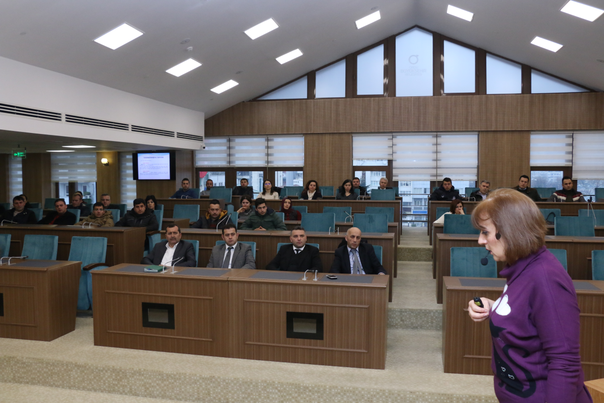 İnsan Kaynakları Dairesi Başkanlığınca İş sağlığı ve Güvenliği Şube Müdürü ve A sınıfı İş Güvenliği Uzmanı Meltem Bayram Bingöl tarafından, Büyükşehir Belediyesi Meclis Salonu’nda verilen eğitime farklı birimlerden çok sayıda personel katıldı.