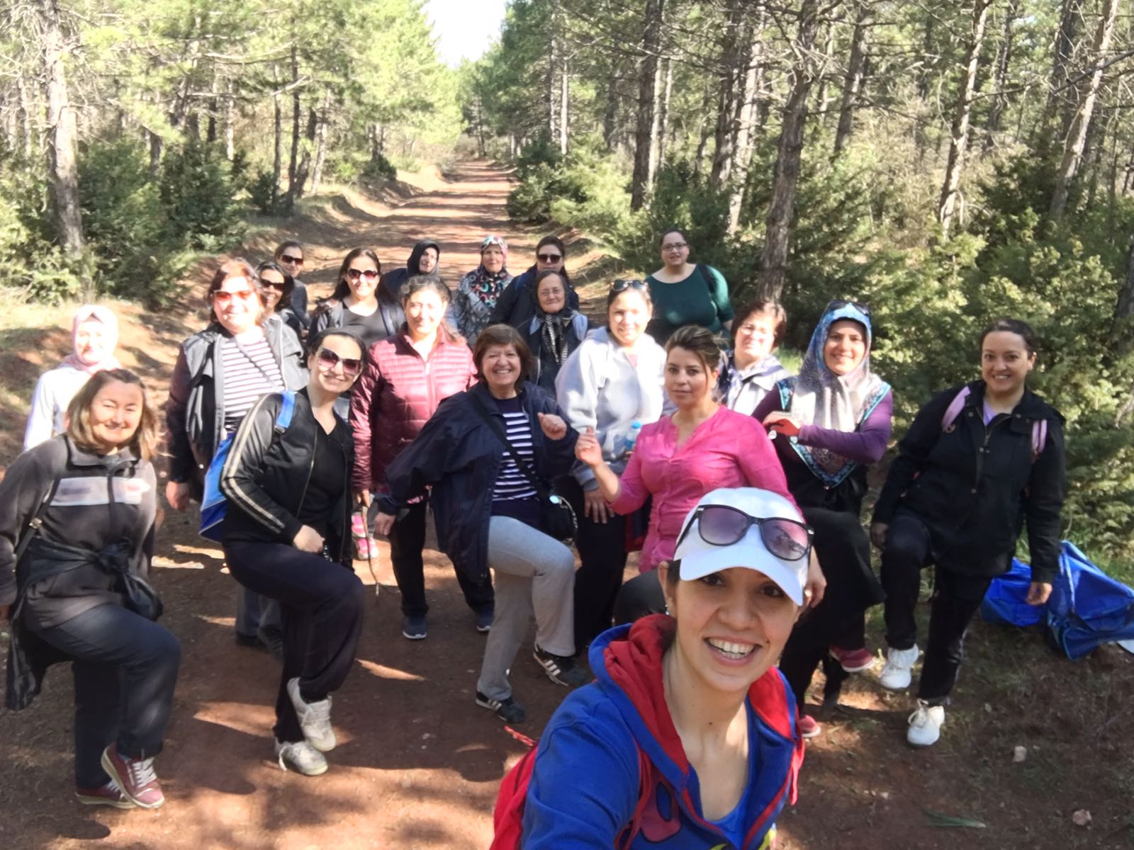 Mehmet Terzi Spor Merkezinde aerobik eğitimi alan kadınlar, Dünya Sağlık Haftası nedeniyle eğitimlerini doğa içinde yaptı. Kent Ormanında gerçekleşen etkinliğe 30 kadın katıldı. Kadınlar burada önce Aerobik hocası Merve Sadıç eşliğinde doğa yürüyüşü yaptı.