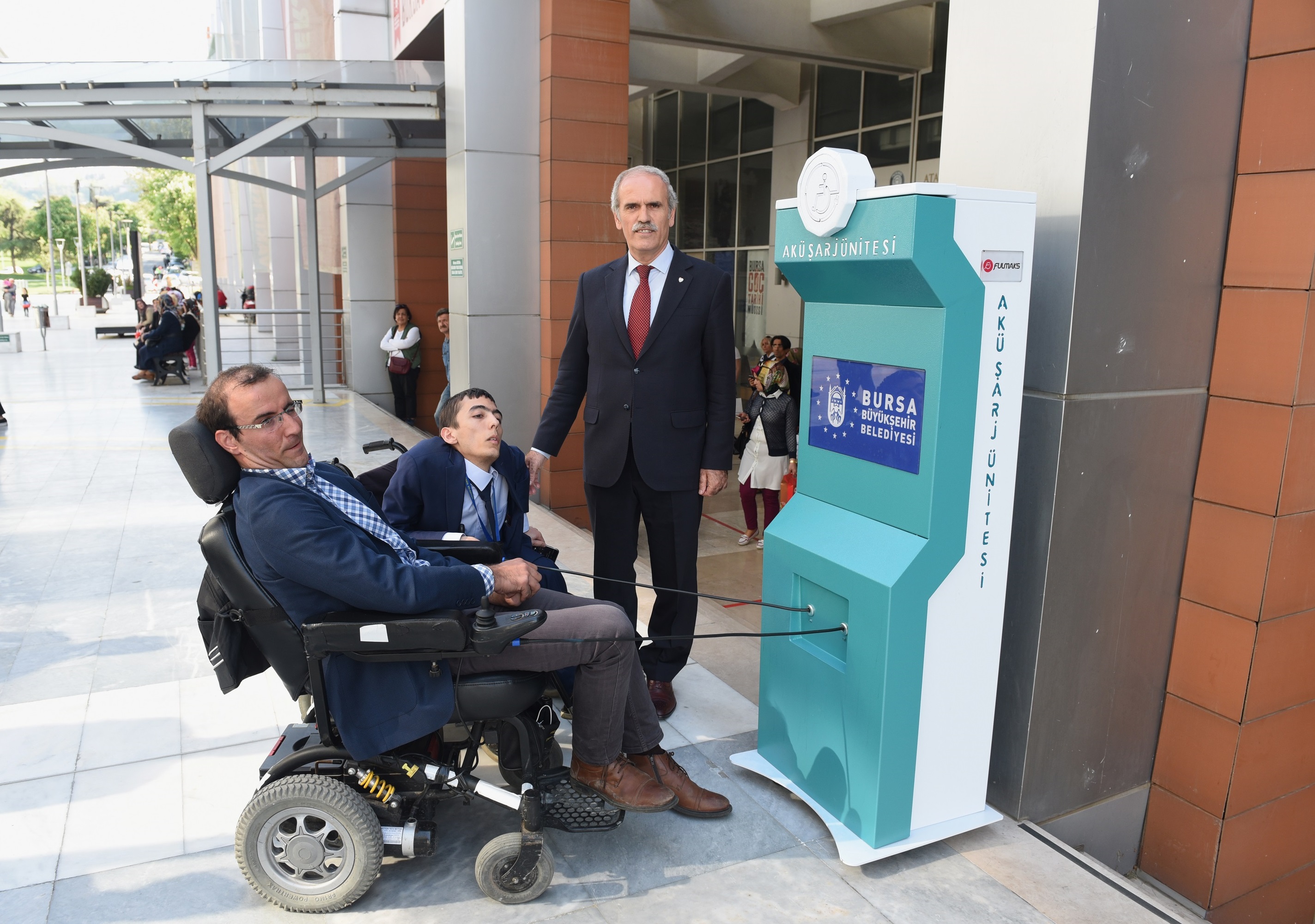 Engelli vatandaşların da yaşam kalitesini en üst seviyeye çıkarmak amacıyla çalışmalarını aralıksız sürdürdüklerini belirten Büyükşehir Belediye Başkanı Recep Altepe, kamuya açık alanlardaki tüm engelli bir bir kaldırdıklarını söyledi. Yol ve kaldırımlardan, bina girişlerine kadar tüm alanların engelli vatandaşların kolay kullanımına uygun olarak yeniden dizayn edildiğini ifade eden Başkan Altepe, “Akülü araç kullanan engelli vatandaşlarımızın önemli sorunların birini de yeterli şarj ünitesi bulunmamasıydı. Akülü araçların tamir ve bakımı yönünde zaten destekler veriyorduk. Şimdi de kentin farklı noktalarına yerleştirdiğimiz şarj üniteleri ile bu sorunu da büyük ölçüde çözmüş olduk. Şuanda Atatürk Kongre Kültür Merkezi, Şehreküstü, Osmangazi, Görükle, Emek ve Acemler Bursaspor İstasyonlarında şarj ünitelerini kurduk. Engelli vatandaşlarımız bu noktalarda araçlarını rahatlıkla şarj edip, şehir içinde rahatlıkla dolaşabilecekler” diye konuştu.