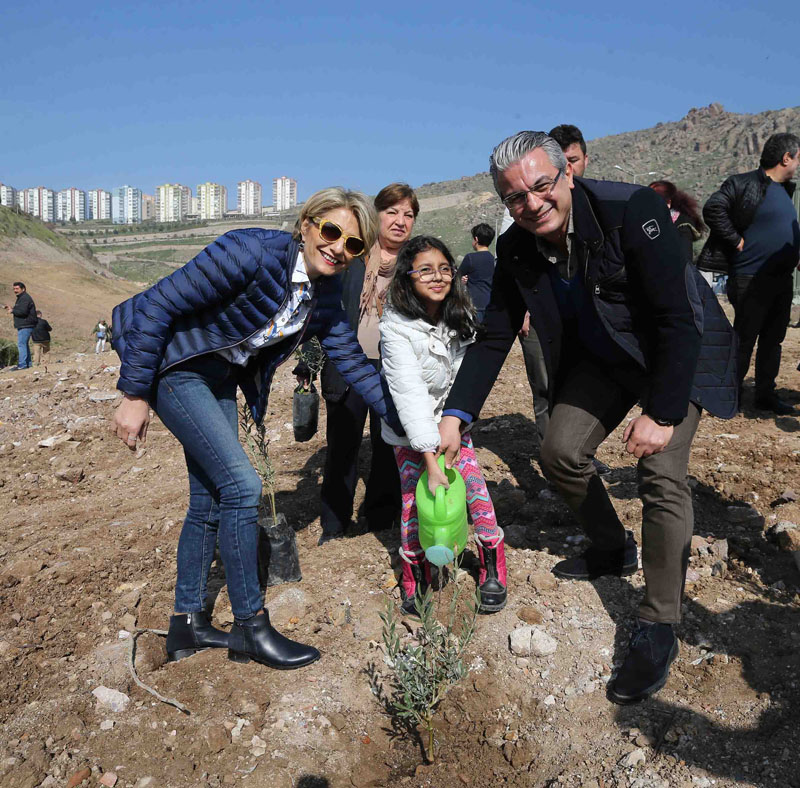 Kentsel Dönüşüm Ormanı’nda bugüne kadar bin 500 fidan toprakla buluştu. Dün de Karşıyaka Belediye Başkanı Hüseyin Mutlu Akpınar, Karşıyaka Müteahhit ve İşadamları Derneği Başkanı Zeki Yüksel, Karşıyaka Yapı Müteahhitleri Derneği Başkanı Niyazi Gültekin, meclis üyeleri, muhtarlar ve ailelerin katılımı ile yüzlerce fidan toprakla buluşturuldu.