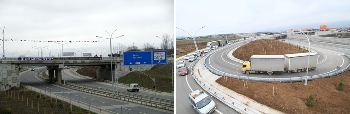 Suadiye-TEM ve Demiryolu Geçiş Köprüsü: Geliş ve gidiş olmak üzere iki ayrı köprü olarak tasarlanmıştır. Köprülerin her biri 3 açıklıklı olup, köprü uzunlukları 80,89 metredir. Proje kapsamında 28 metre (58 adet) fore kazık imalatı yapılmıştır.