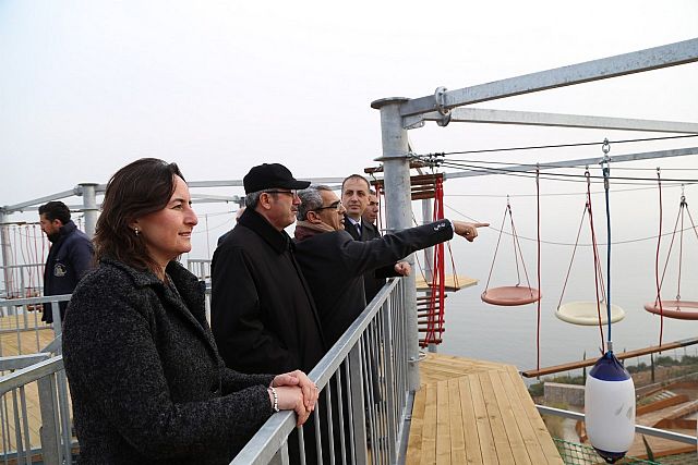 Gebze Belediye Başkanı Adnan Köşker, Eskihisar’ı cazibe merkezi haline getirecek olan ve yapımı son aşamaya gelen “Macera ve Aksiyon Parkında” incelemelerde bulundu. Başkan Köşker’e belediye başkan yardımcısı Nilay Ayran, ilgili birim müdürleri ve yüklenici firma yetkilileri eşlik etti. Parkı gezen Başkan Köşker, firma yetkililerinden yapımı bitmek üzere olan tırmanma kulesi ve deneme çalışmalarına başlanan dağ kızağıyla ilgili bilgi aldı. Betonarme çalışmaları biten parkta, peyzaj düzenleme ve fidan dikim çalışmaları sürüyor.