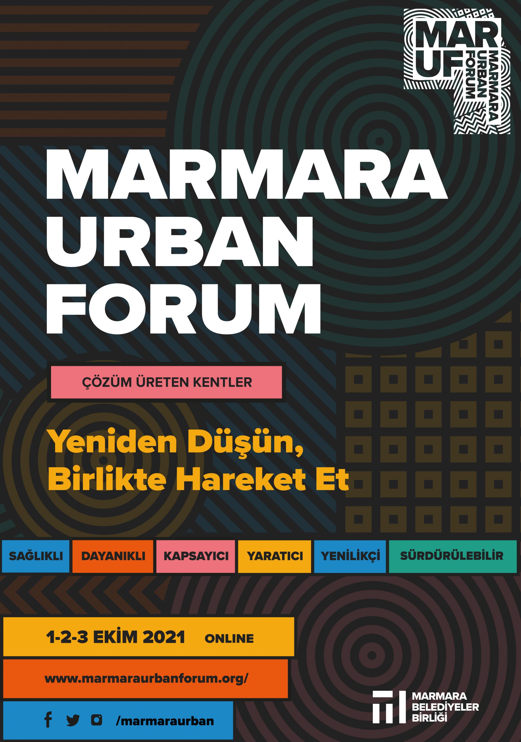Marmara Belediyeler Birliği (MBB) tarafından 1-2-3 Ekim 2021 tarihlerinde ikincisi online olarak düzenlenecek Marmara Urban Forum (Marmara Uluslararası Kent Forumu – MARUF21), COVID-19 salgınıyla birlikte yerleşik kentsel politikaları ve çözümleri yeniden sorgulamanın gereğiyle “Çözüm Üreten Kentler: Yeniden Düşün, Birlikte Hareket Et” başlığı etrafında şekilleniyor. Katılımın ücretsiz olduğu forum için kayıtlar başladı.