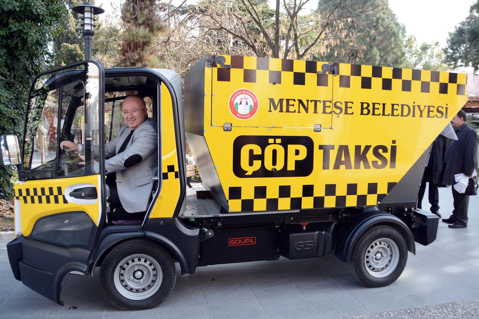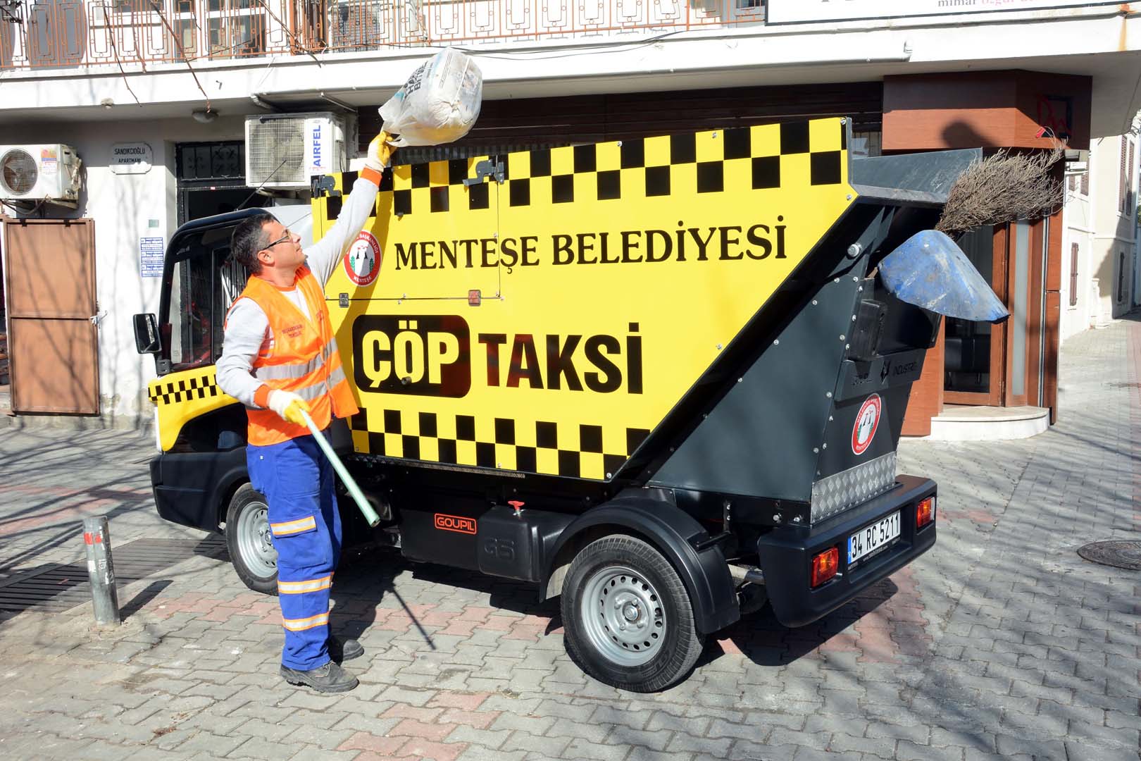 Menteşe Belediyesi, kentin ana cadde, ara sokak ve parklarında kullanılması amacıyla elektrikli çöp taksi hizmeti başlattı. Çöp Taksinin kentin dar sokaklarına rahatlıkla ulaşabileceğini belirten Menteşe Belediye Başkanı Bahattin Gümüş, “Büyük çöp arabalarının giremediği dar sokaklarımızdaki çöpler artık bu aracımızla rahat bir şekilde alınacak” dedi.