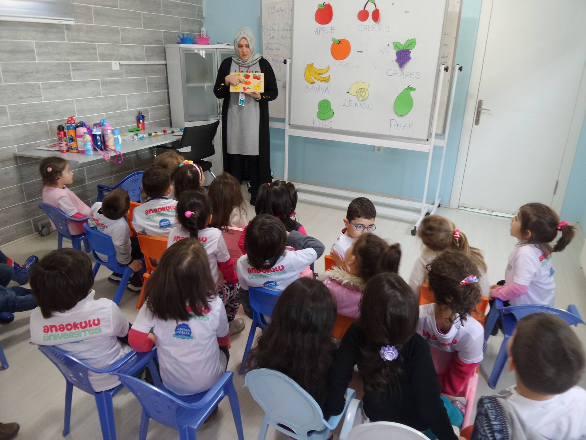 Gebze Belediyesi Güzel Gelecek Akademisi bünyesinde kurulan Anaokulu Üniversitesi’nde miniklerin eğlenceli eğitimleri sürüyor. Her hafta farklı bir etkinliğin düzenlediği Anaokulu Üniversitesi’nin minik öğrencileri güne, Sağlıklı Yaşam Parkuru ile başladı. Parkuru tamamlayan minikler daha sonra Yumurta Kafalar etkinliğinde hobi ve hayvanları seviyorum konuları işledi. Miniklere hayvanları sevmenin ne kadar önemli olduğu, eğlenceli oyunlarla anlatıldı. Minikler günü İngilizce dersiyle tamamladı. Minikler derste meyvelerin İngilizce isimlerini kendi oluşturdukları meyve sepetleriyle öğrendi.