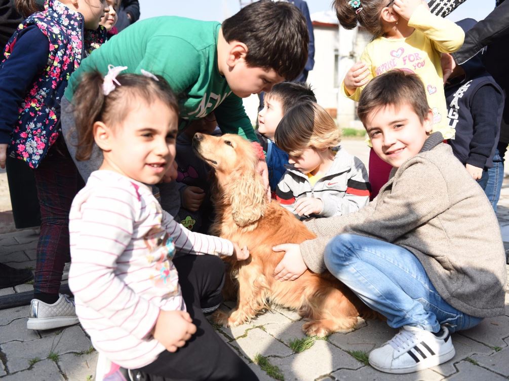 Karesi Belediye Başkanı Yücel Yılmaz’ın talimatı ile Karesi Belediyesi Sağlık İşleri Müdürlüğü, çocuklara hayvan sevgisi aşılamak için Nazende Kurşun Anaokulu Öğretmeni Emine İlhan tarafından başlatılan ‘Sokak Hayvanlarının Sesiyiz Projesi’ne tam destek verdi. Sahipsiz hayvanların aç kalmasını önlemek için şehrin belirli noktalarına Pugedon ve güvercin beslenme odaklarını yerleştiren, Karesi Belediyesi şimdi de minik öğrencilere hayvan sevgisini aşılamak için sosyal dokunuşlar yapıyor. ‘Sokak Hayvanlarının Sesiyiz Projesi’ kapsamında Nazende Kurşun Anaokulu Minik Kalpler Sınıfı öğrencileri ve öğretmenleri Emine İlhan ile birlikte Karesi Belediyesi’ni ziyaret etti. Ardından belediye ekipleri gözetiminde Ovaköy Mahallesi’ndeki Balıkesir Büyükşehir Belediyesi’ne ait Sokak Hayvanları Geçici Bakımevi’ne götürdü. Hayvanları yakından tanıma imkanı bulan öğrenciler keyifli dakikalar geçirdi. Öğrenciler projenin kapanış toplantısında kendi okullarında hayvanlarla ilgili verilen eğitim seminerinin ardından pasta keserek tamamladı. Karesi Belediyesi bir de çocuklara sürpriz yaparak okulun bahçesine de kedi evi yerleştirdi.