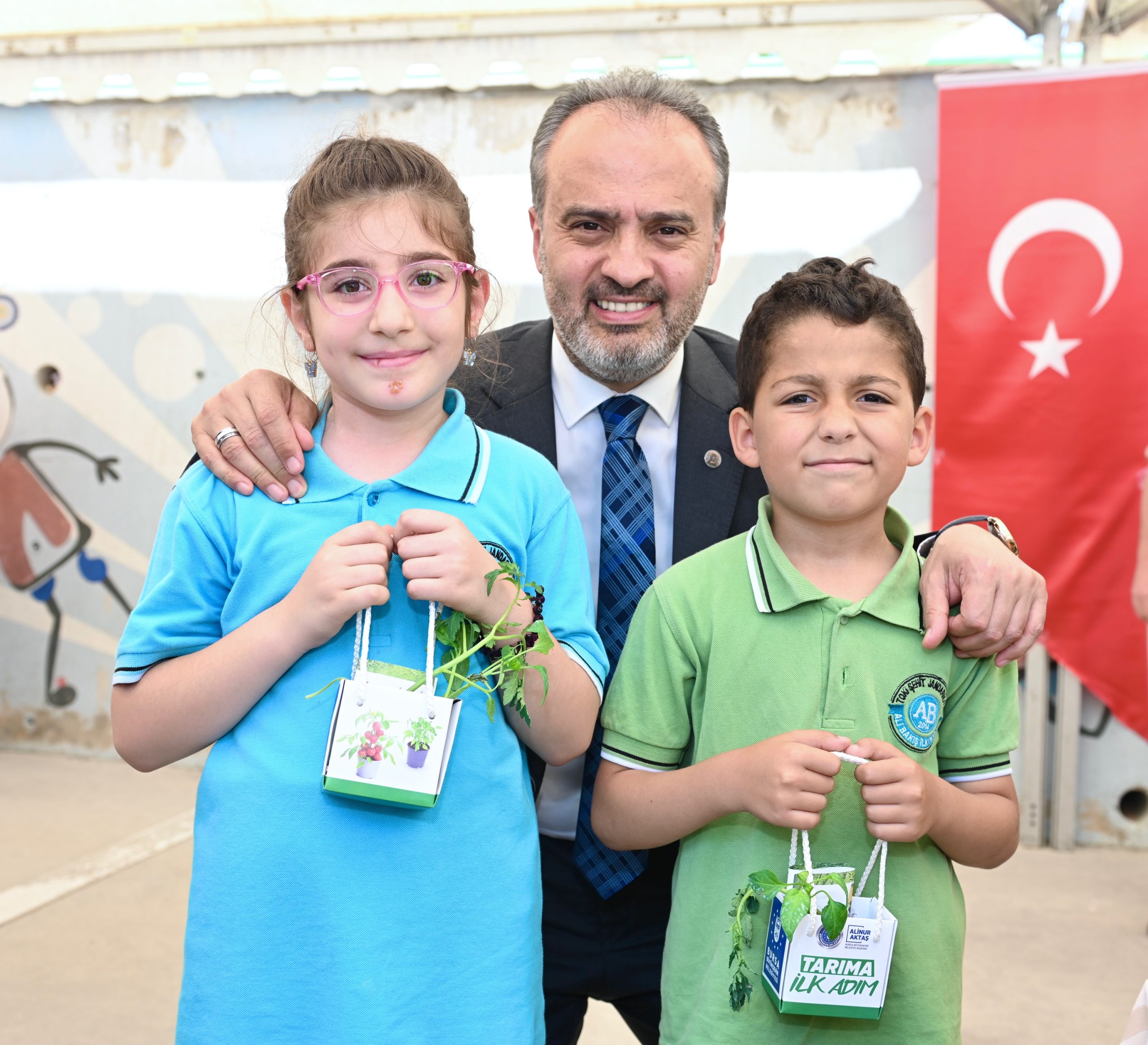 Bursa Büyükşehir Belediye Başkanı Alinur Aktaş, tarıma olan ilgiyi şehrin geneline yaymayı amaçladıklarını söyledi. Çocukları toprakla buluşturmak için fide dağıttıklarını belirten Başkan Alinur Aktaş, “Büyükşehir Belediyesi olarak, altyapıdan üstyapıya kadar birçok konuyla ilgileniyoruz. Bunun yanında tarım ve hayvancılığı da çok önemsiyoruz. İlkokul öğrencilerimizi tarımla buluşturmak amacıyla, toplam 10 bin adet domates ve biber fidesi dağıttık. Öğretmenler tarafından okulda hobi bahçesi oluşturulmasını da çok güzel buldum. Ayrıca, Dünya Süt Günü dolasıyla çocuklarımıza süt dağıtımı yaptık” dedi.