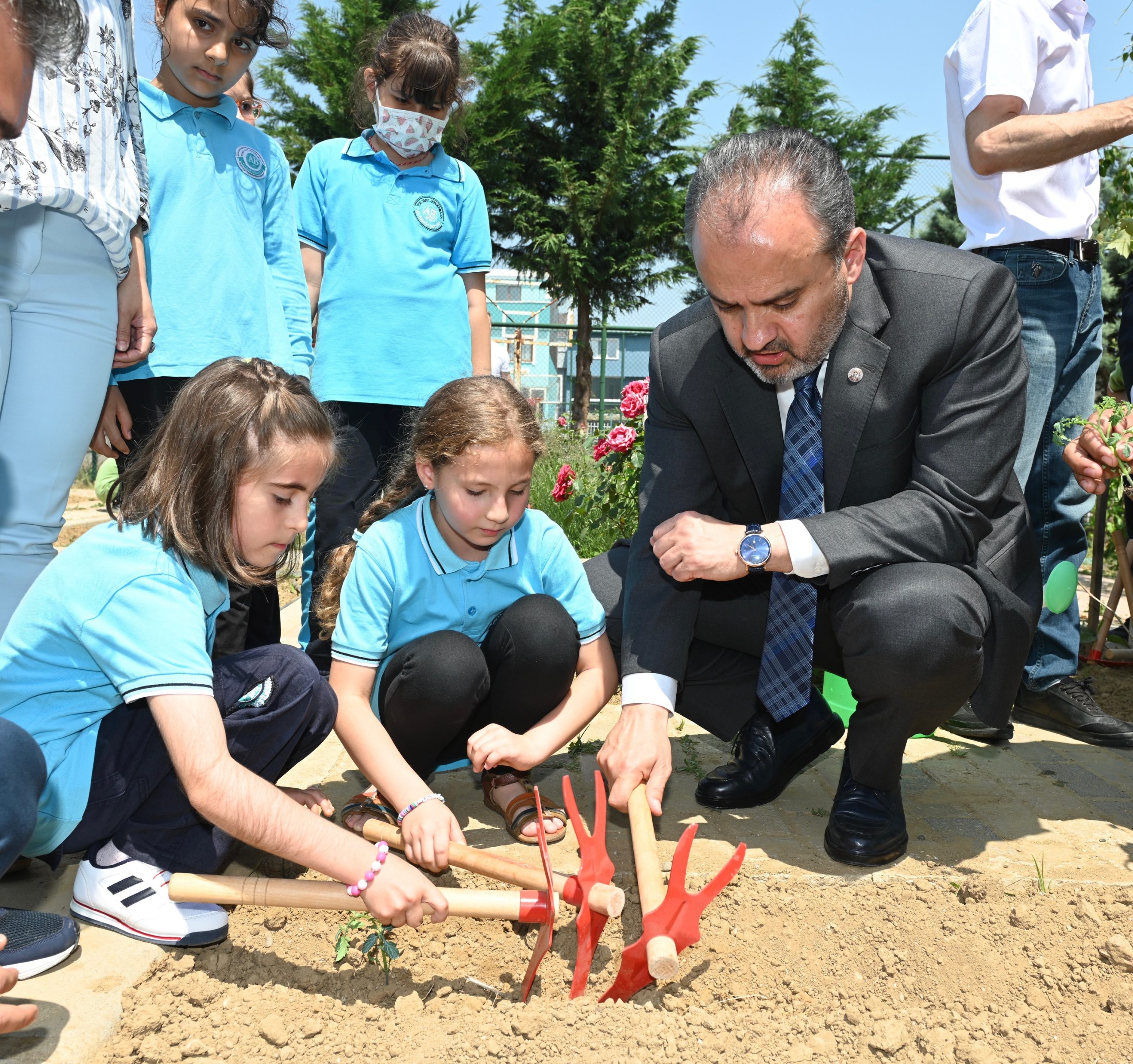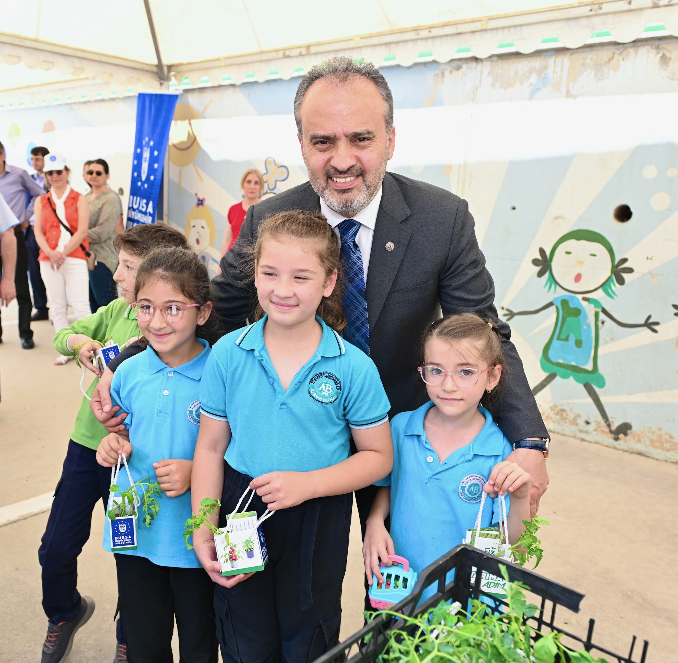 Bursa Büyükşehir Belediyesi, ‘çocukların tarımsal üretim aşamalarını uygulayarak öğrenebilmeleri amacıyla’ İl Millî Eğitim Müdürlüğü işbirliğinde 5 bin öğrenciye toplam 10 bin adet domates ile biber fidesi dağıttı. Büyükşehir Belediye Başkanı Alinur Aktaş, öğrencilerle birlikte dağıtılan fideleri toprakla buluşturdu.