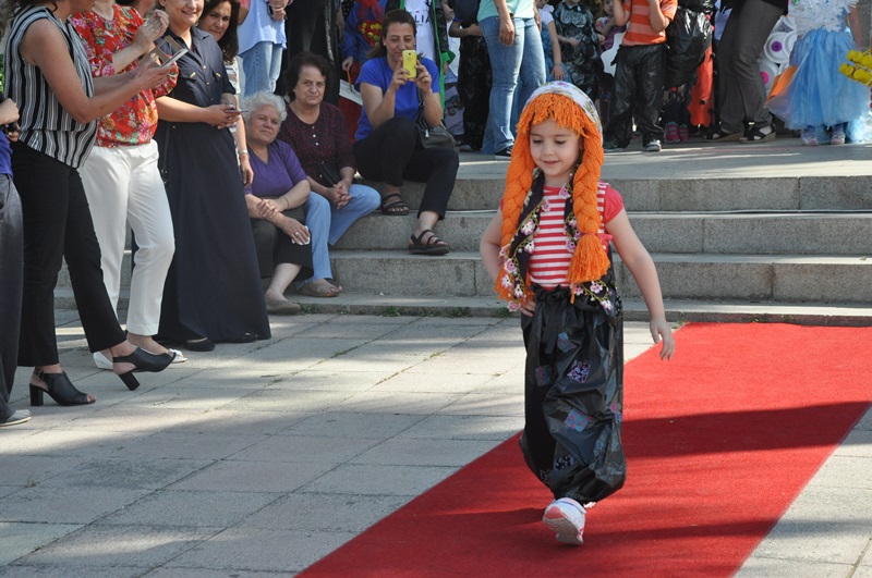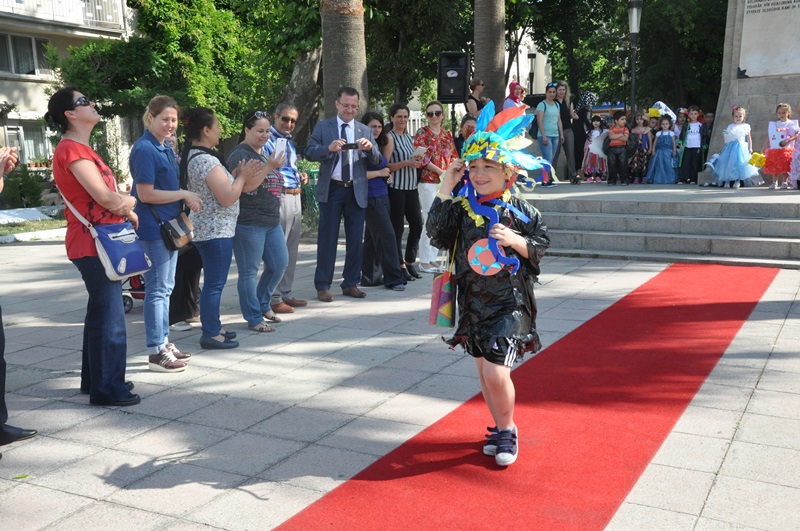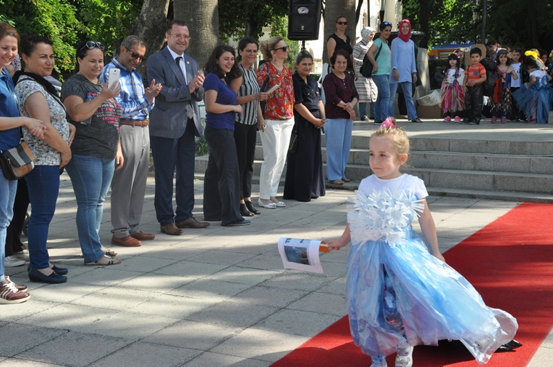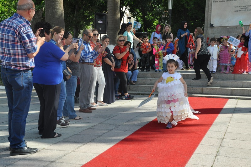 Mudanya Belediyesi M.Agah Bursalı Kreşi’nin minik öğrencileri 5 Haziran Dünya Çevre Günü’nde farklı bir etkinliğe imza attı. Geri dönüşebilen malzemelerden öğretmenleri yardımıyla yaptıkları giysileri giyen minik öğrenciler, Mütareke Meydanı’nda düzenlenen defileyle bu giysileri sergilediler. Mudanya Belediye Başkan Yardımcısı Akın Poroy, Kültür ve Sosyal İşler Müdürü Sevgi Akuş, Kreş Müdürü Adnan Gül, öğretmenleri ve Mudanyalıların katıldığı etkinlikte hazırladıkları dövizlerle de çevre mesajları veren minikler geri dönüşüm ve çevre kirliliği konusunda farkındalık yarattılar.