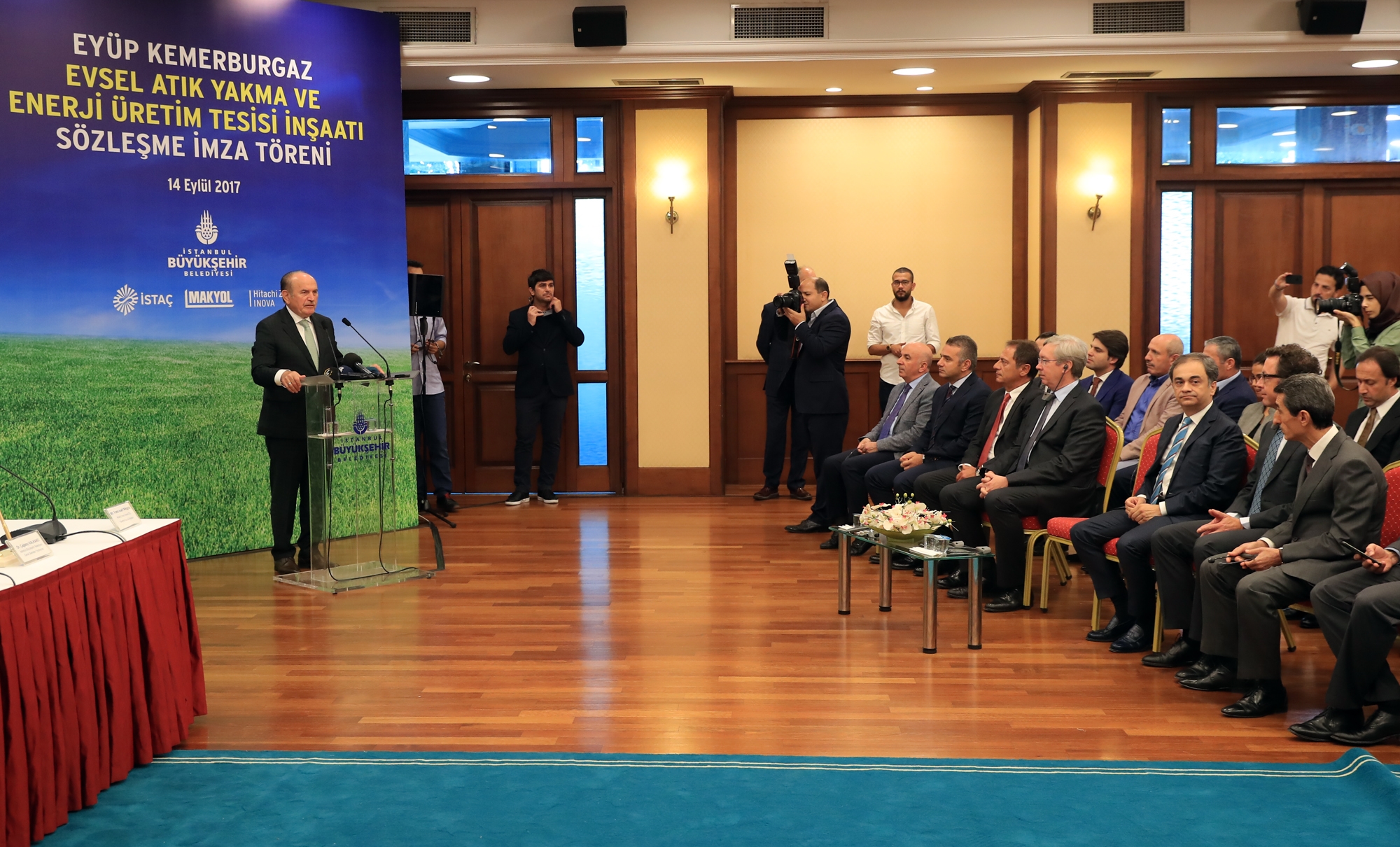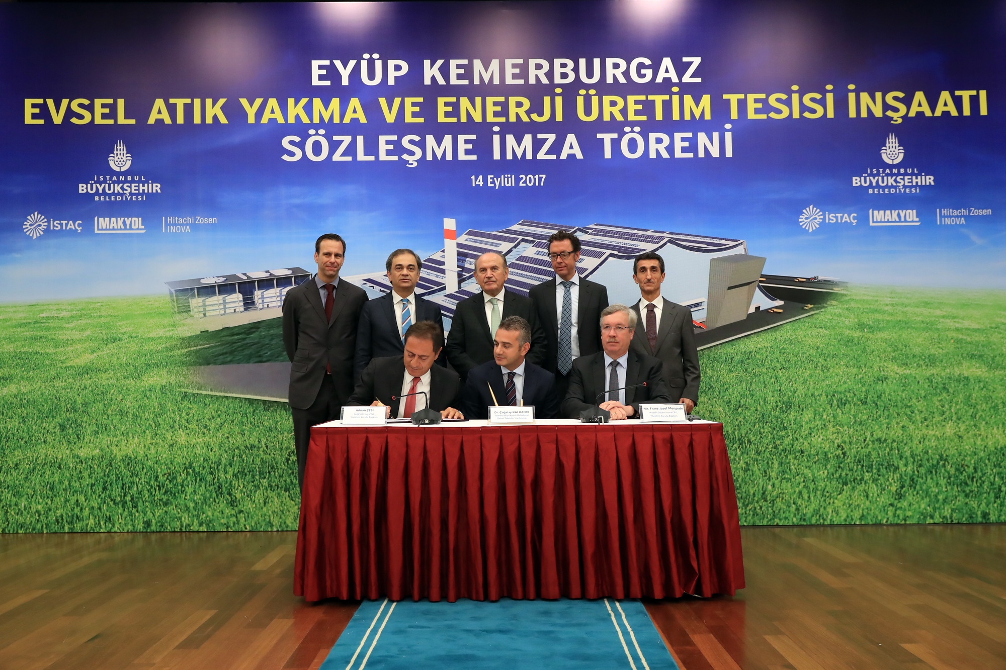 Eyüp Kemerburgaz Evsel Atık Yakma Ve Enerji Üretim Tesisi İnşaatı Sözleşme İmza Töreni, İstanbul Büyükşehir Belediye Başkanı Kadir Topbaş’ın katılımıyla gerçekleşti. Saraçhane belediye binasındaki törene Japon Hitachi Zosen İnova Şirketi CEO’su Franz Josef Mengende, Makyol İnşaat Yönetim Kurulu Başkanı Adnan Çebi, İBB Genel Sekreteri Hayri Baraçlı ve İBB Genel Sekreter Yardımcıları Çağatay Kalkancı-Mevlüt Bulut-Nihat Macit de katıldı.