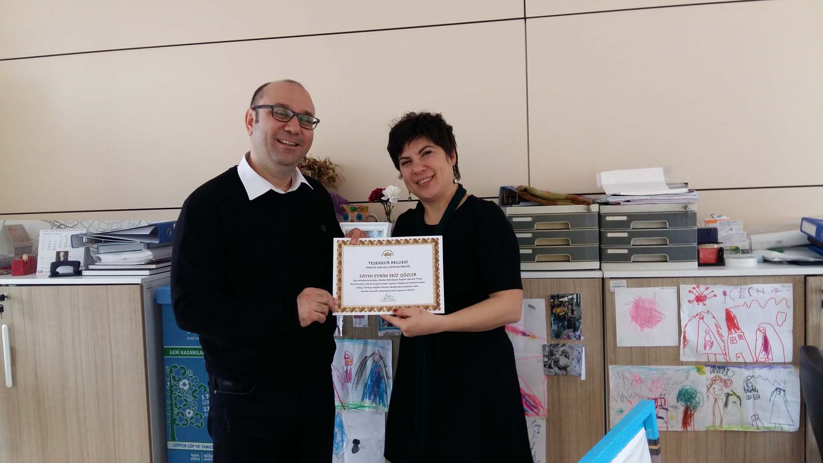 Nilüfer Belediyesi’nde uzun yıllar Sağlıklı Kentler Birliği koordinatörü olarak görev yapan ve bu görevini kısa süre önce Necla Yörüklü’ye devreden Evrim Ekiz Gözler’e bugüne kadar Birliğimize vermiş olduğu hizmet ve destekten dolayı teşekkür ziyaretinde bulunduk.