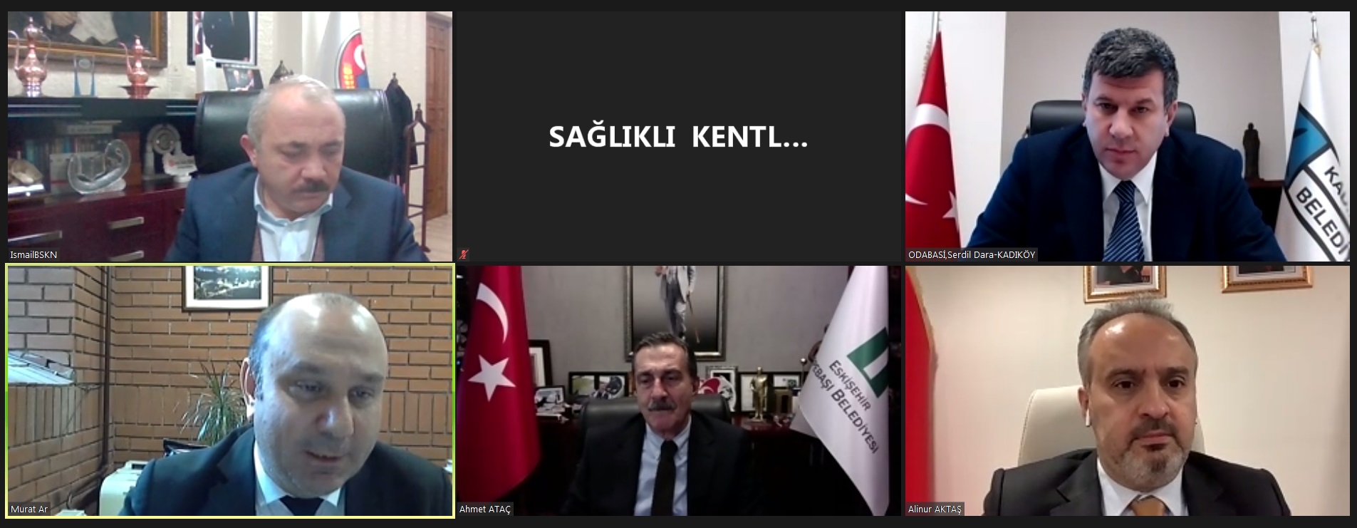 Birlik Başkanımız Alinur Aktaş başkanlığında telekonferans yöntemiyle gerçekleşen toplantıya Encümen Üyelerimiz Çankırı Belediye Başkanı İsmail Hakkı Esen, Kadıköy Belediye Başkanı Şerdil Dara Odabaşı, Tepebaşı Belediye Başkanı Ahmet Ataç ve Birlik Müdürü Murat Ar katıldılar.