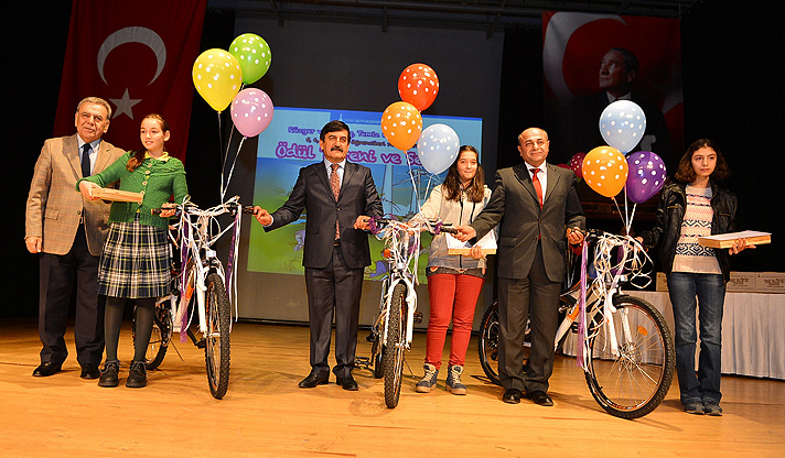 Milli Eğitim Bakanlığı’na bağlı okullardaki 5, 6, 7. ve 8. sınıf öğrencilerine yönelik olarak düzenlenen ve bireysel olarak enerji tasarrufunun toplumun her kesiminde benimsenmesi ve uygulanabilir hale getirilmesini hedefleyen “Rüzgar ve Güneş, Temiz Enerjiyle Bütünleş” adlı yarışmaya 545 eser katıldı. Yaşar Üniversitesi Sanat ve Tasarım Fakültesi Dekanı Prof. Dr. Gören Bulut, Yaşar Üniversitesi Grafik Tasarım Bölümü Başkanı Yrd. Doç. Dr. S. Umut Türker ve Karataş Anadolu Lisesi Müdür Yardımcısı Resim Öğretmeni Ümran Caman’dan oluşan Seçici Kurul’un yaptığı zorlu değerlendirme sonucunda ilk üç dereceye giren resim ile sergilenmeye hak kazanan 50 eser belirlendi. Gürçeşme Leman Alptekin Ortaokulu’ndan 8. sınıf öğrencisi Melisa Dülger, Türk Telekom Yatılı Bölge Ortaokulu’ndan 7. sınıf öğrencisi Şengül Sedef Kırbıyık ve Güzelyalı Ortaokulu’ndan 5. sınıf öğrencisi Gizem Emanet ilk 3 dereceyi paylaşarak bisikletlerini İzmir Büyükşehir Belediye Başkanı Aziz Kocaoğlu,İzmir Milletvekili Mustafa Moroğlu ve Çiğli Belediye Başkanı Hasan Arslan’ın elinden aldı.