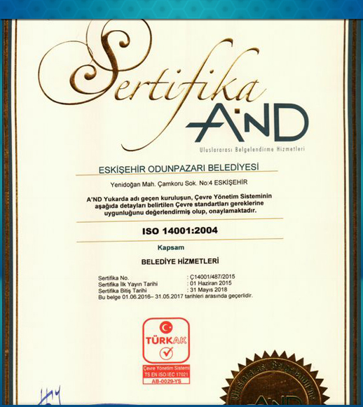 Her yıl düzenli olarak gerçekleştirilen denetimler sonucunda 2016 yılında da Odunpazarı Belediyesi ISO 14001 (Çevre Yönetim Sistemi) Belgesi almaya hak kazanarak; çalışmalarının çevreye uygun olduğunu bir kere daha belgeledi.