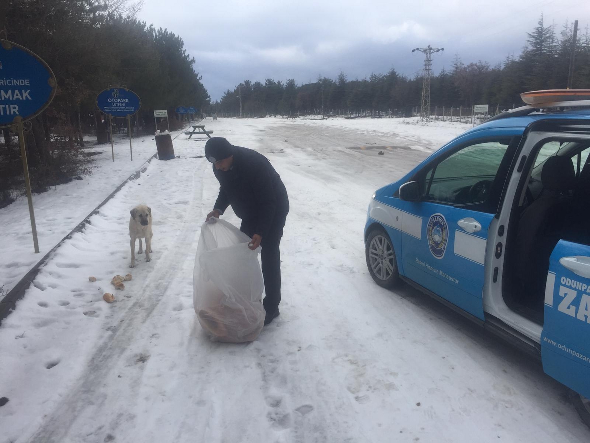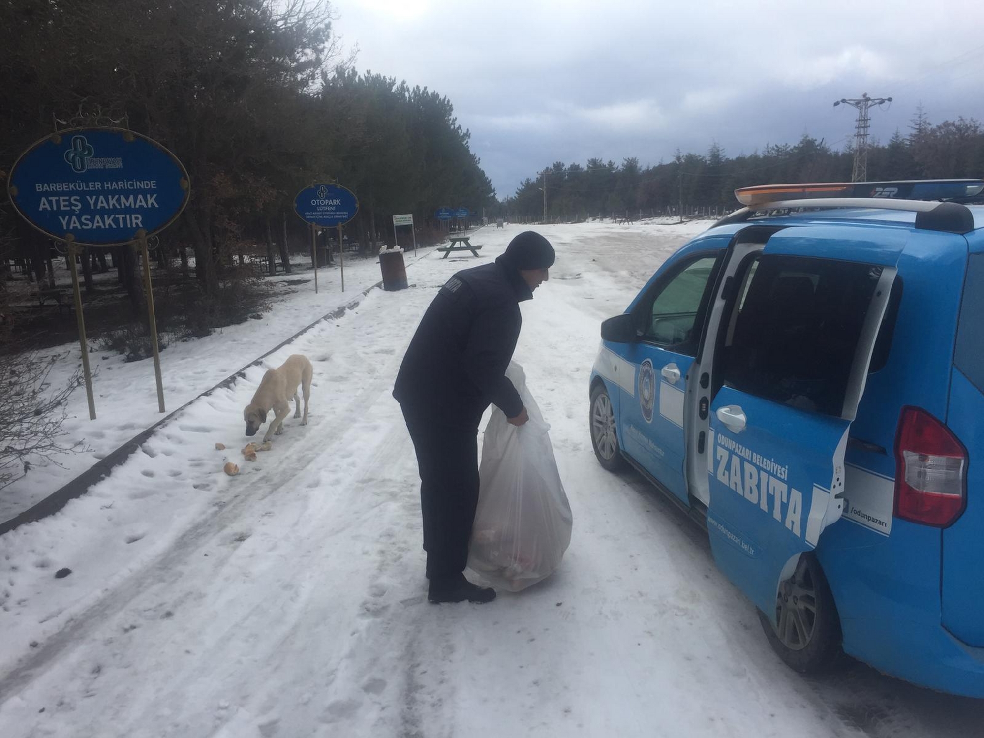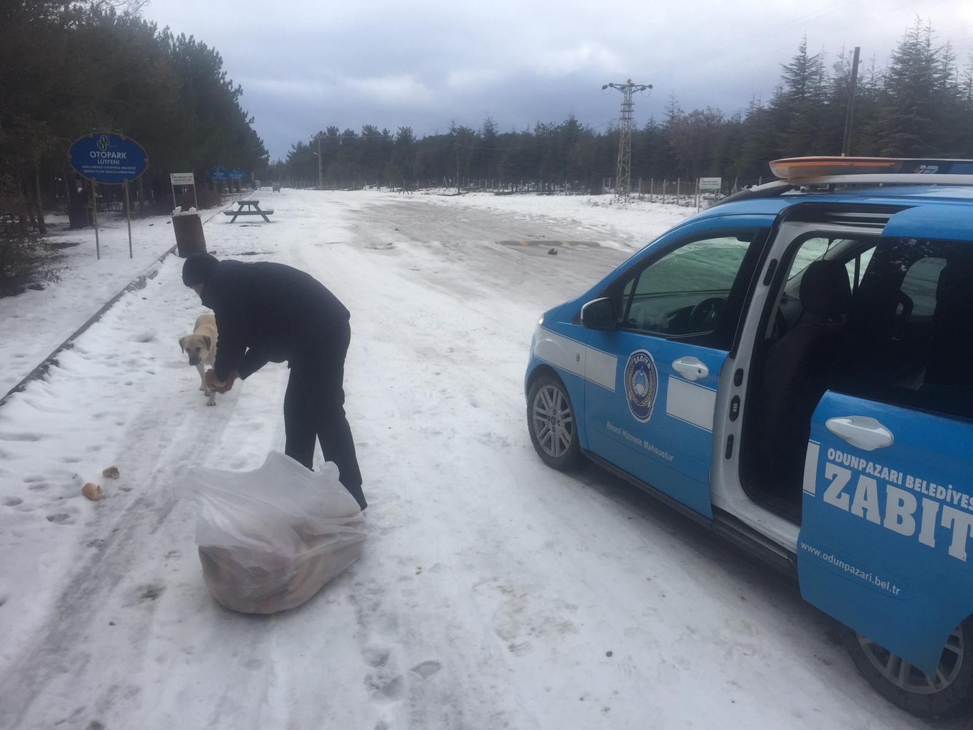 Odunpazarı Belediyesi Zabıta Müdürlüğü çalışanları örnek bir davranışa imza attı. Havaların eksilerin altına düşmesi ile sokakta yaşamakta zorlanan ve yiyecek bulamayan köpeklerin yardımına koştu.