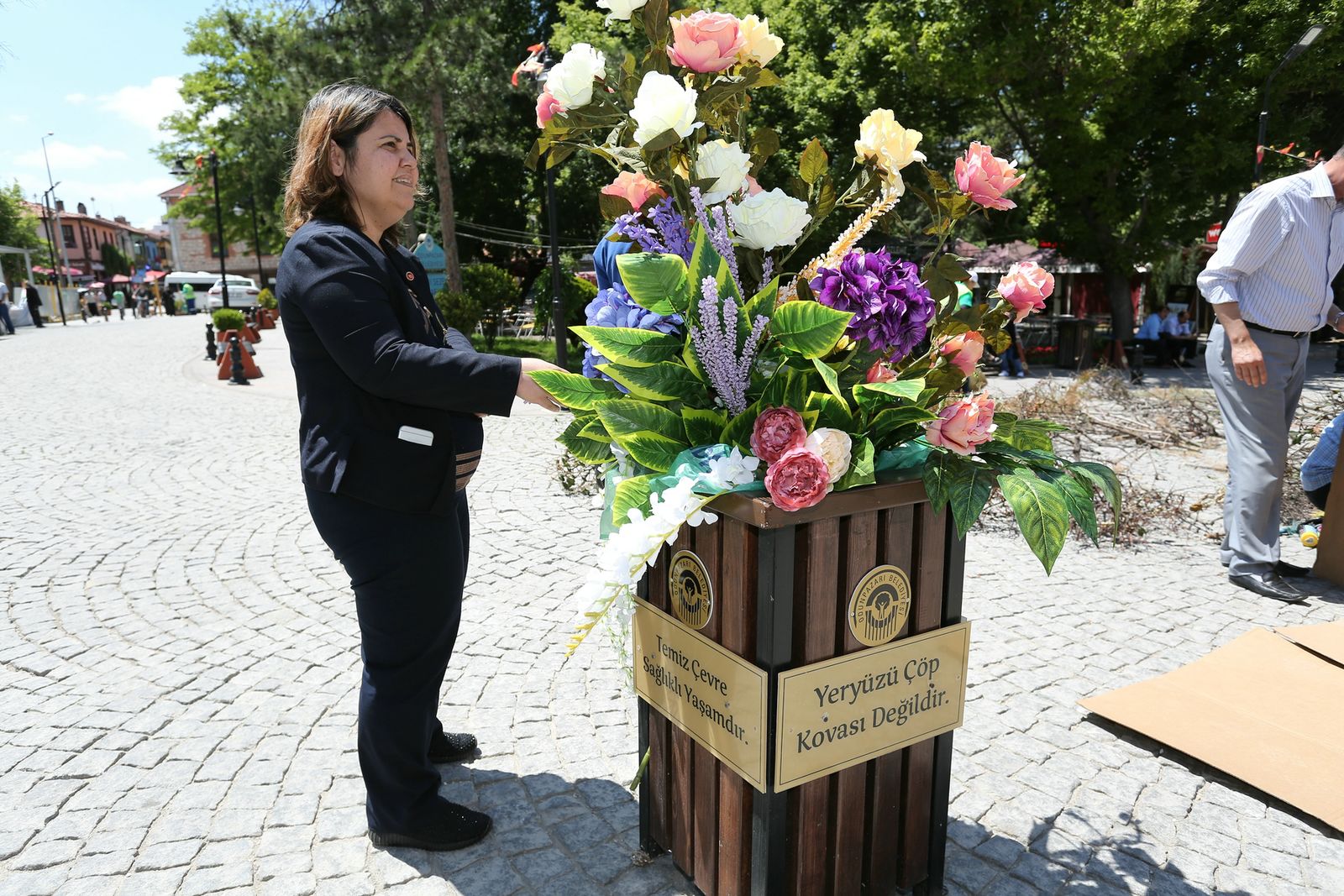 Tarihi Odunpazarı Bölgesi’nde yer alan çöp kutuları çiçek açtı. Odunpazarı Belediyesi ‘çevrenin önemine dikkat çekmek için’ çöp kutularına çiçek yerleştirdi. Rengarenk çiçeklerle süslenen çöp kutuları ise Tarihi Odunpazarı Bölgesi’nde farklı alanlara yerleştirildi.