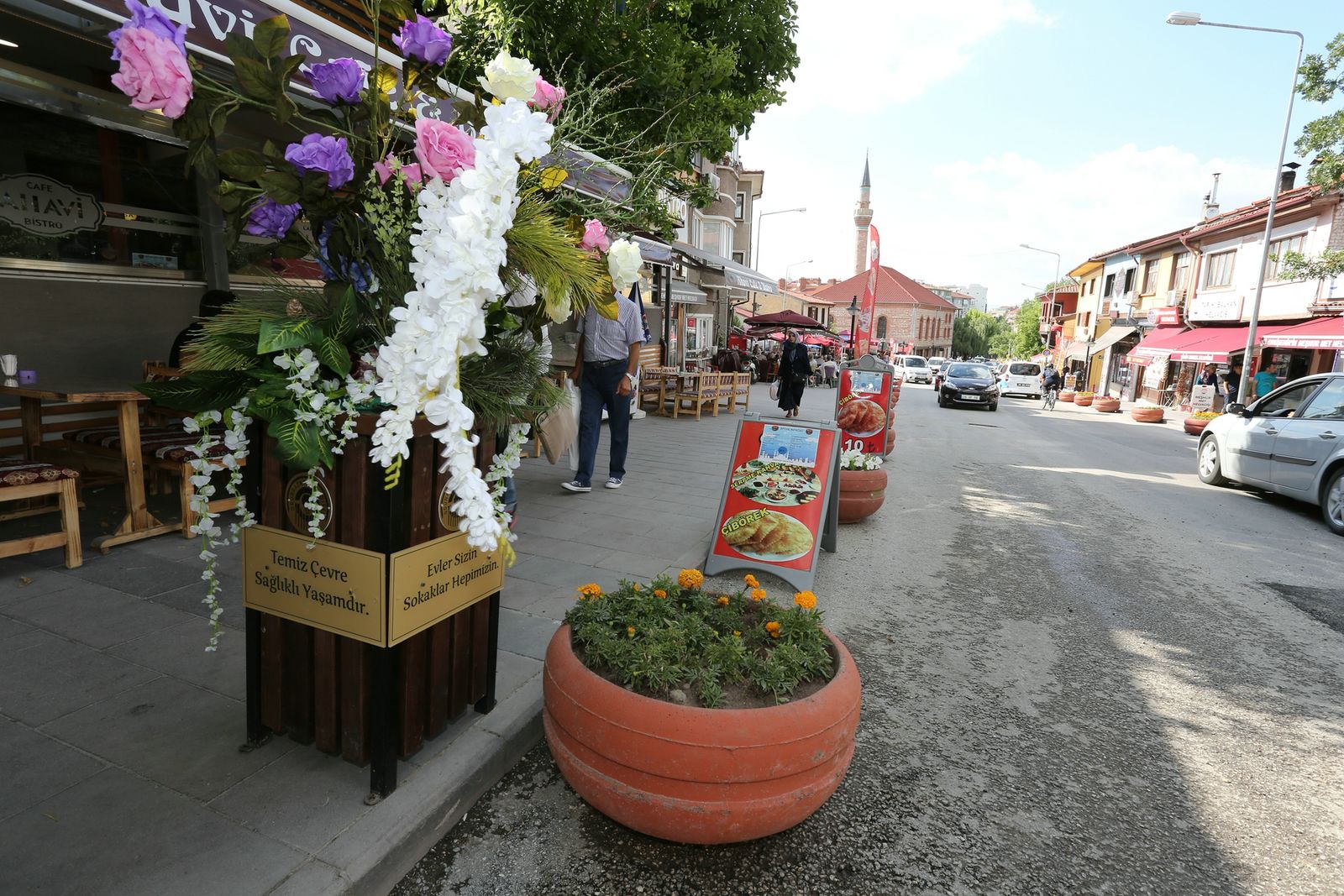 Bugünlerde Tarihi Odunpazarına gidenleri sokaklardaki rengarenk çiçeklerle bezenmiş çöp kutuları karşılıyor. Mavi, Yeşil, mor… Renk renk çiçekler…