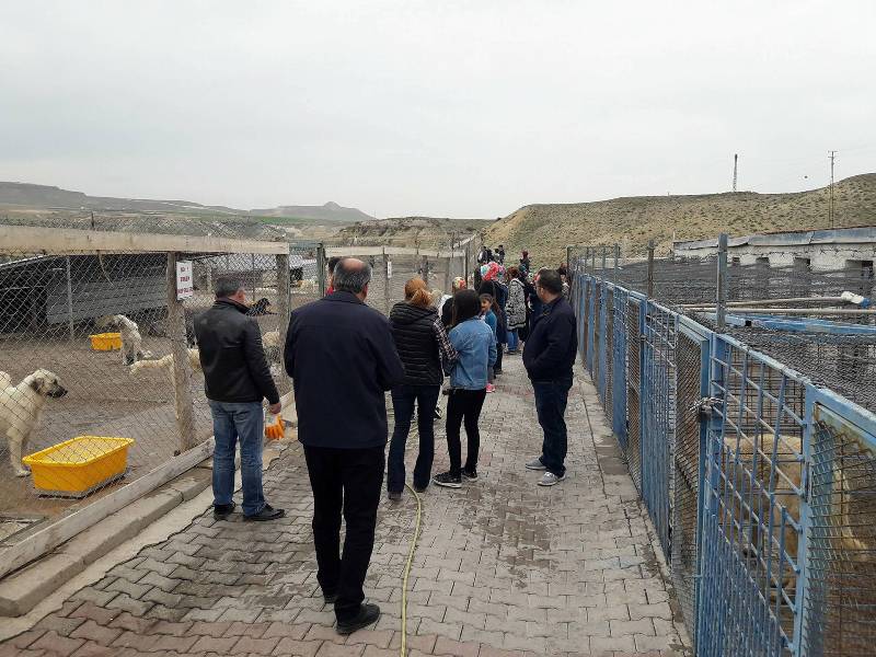 Öğretmenler ve aileleri ile birlikte barınağı gezen öğrenciler, sokak hayvanları için yapılan çalışmalar hakkında görevlilerden bilgi aldı.