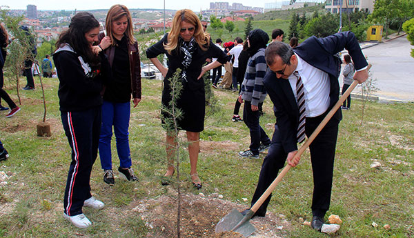 Kutlutaş Kardeşlik Parkı karşısındaki yeşil alanda 150 adet çam ağacını toprakla buluşturan öğrencilere, öğretmenlerinin yanı sıra Çankaya Belediyesi Başkan Vekili Kadir Yıldırım ve Başkan Yardımcısı Nafiz Kaya da toprak atarak eşlik etti.