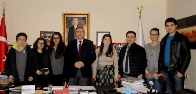 Türkiye’de bireylerin sosyal, doğa ve uygulamalı bilimler alanındaki çalışmalarını destekleme ve geliştirilmesi amacıyla çalışmalar yürüten Bilim Kahramanları Derneği’nin düzenlediği proje yarışmasına katılacak olan Mustafa Sonel, Ezgi Kılıç, Sezen Erdoğan, Berken Güzel, Damla Dinçer, Barış Akun ve Serra Alp, Matematik Öğretmeni Şule Caran ve Fizik Öğretmeni Caner Yılmaz eşliğinde Belediye Başkanı Dursun Mirza’ya projelerini tanıttılar.